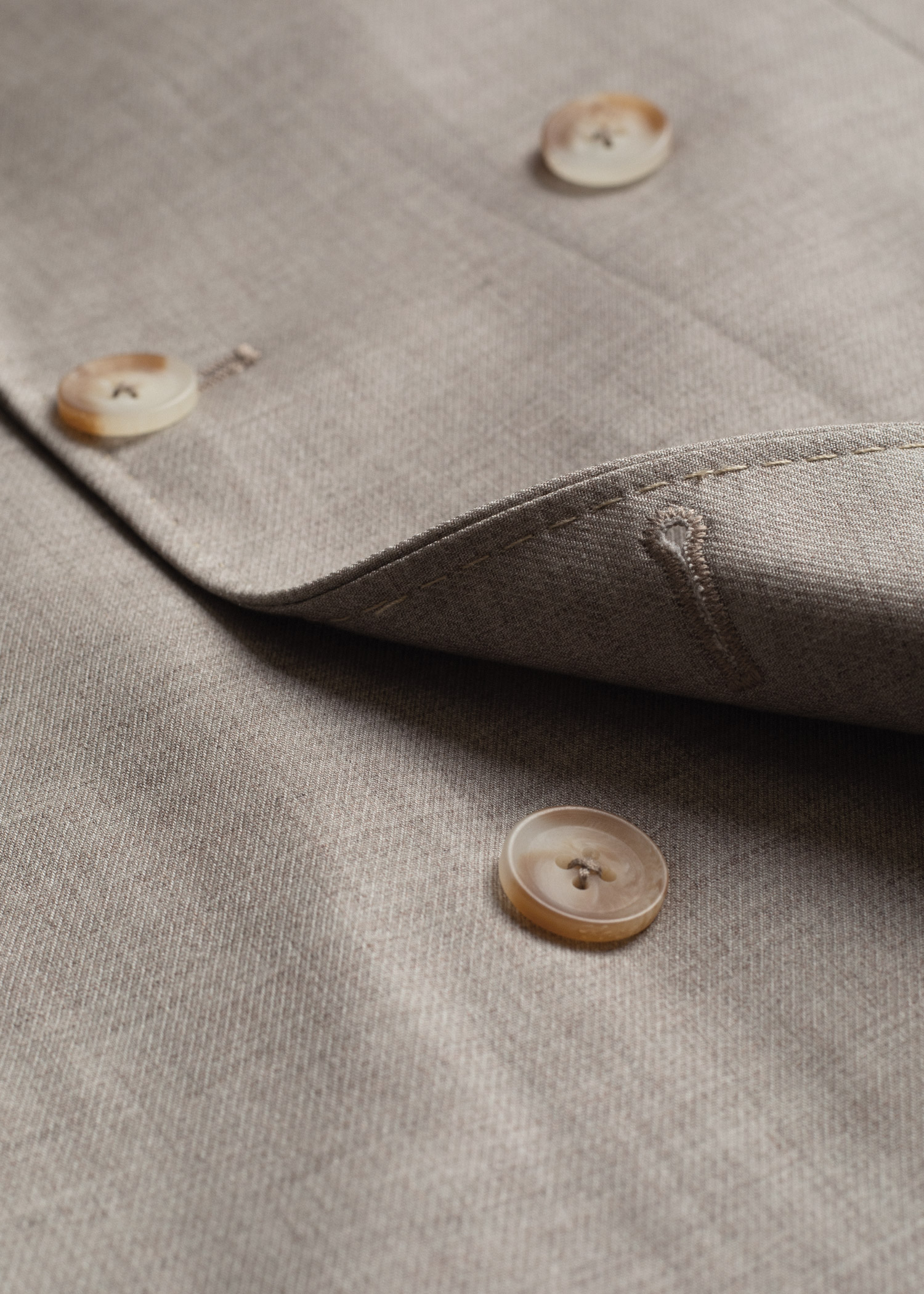 کت تک دبلبرست، دو چاک در پشت، دارای جیب روی پیش سینه جهت استفاده از پوشت، دارای ۲٪ اسپاندکس جهت راحتی بیشتر، داخل تمام آستر
