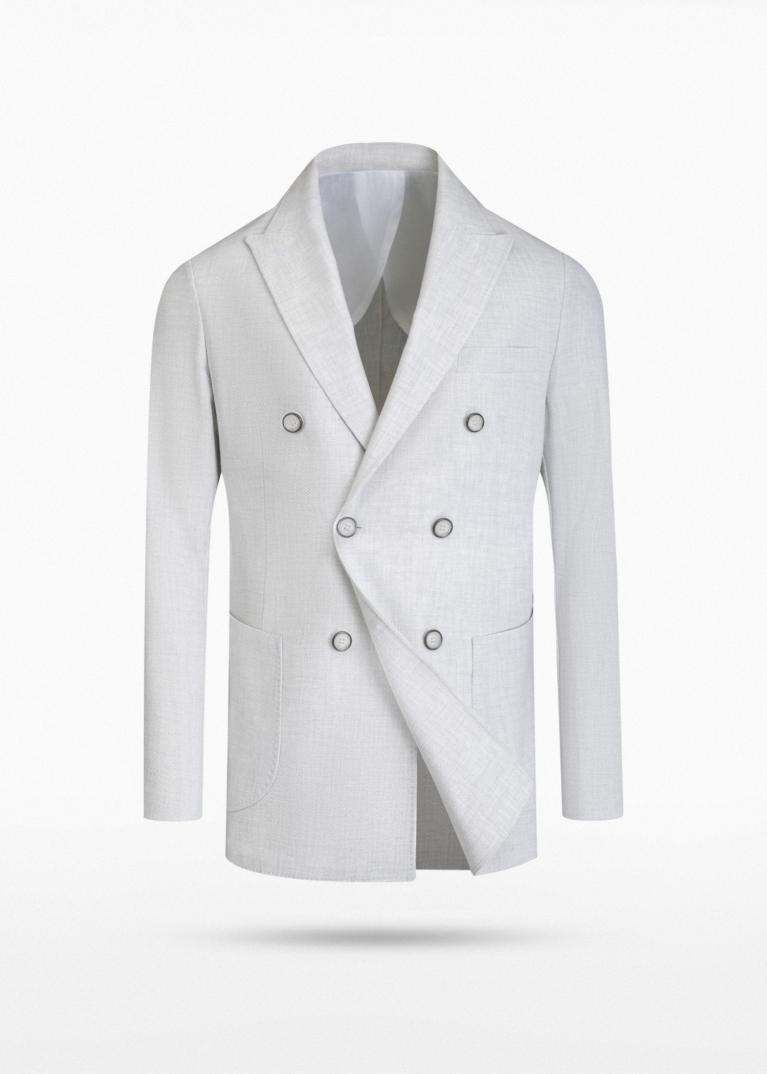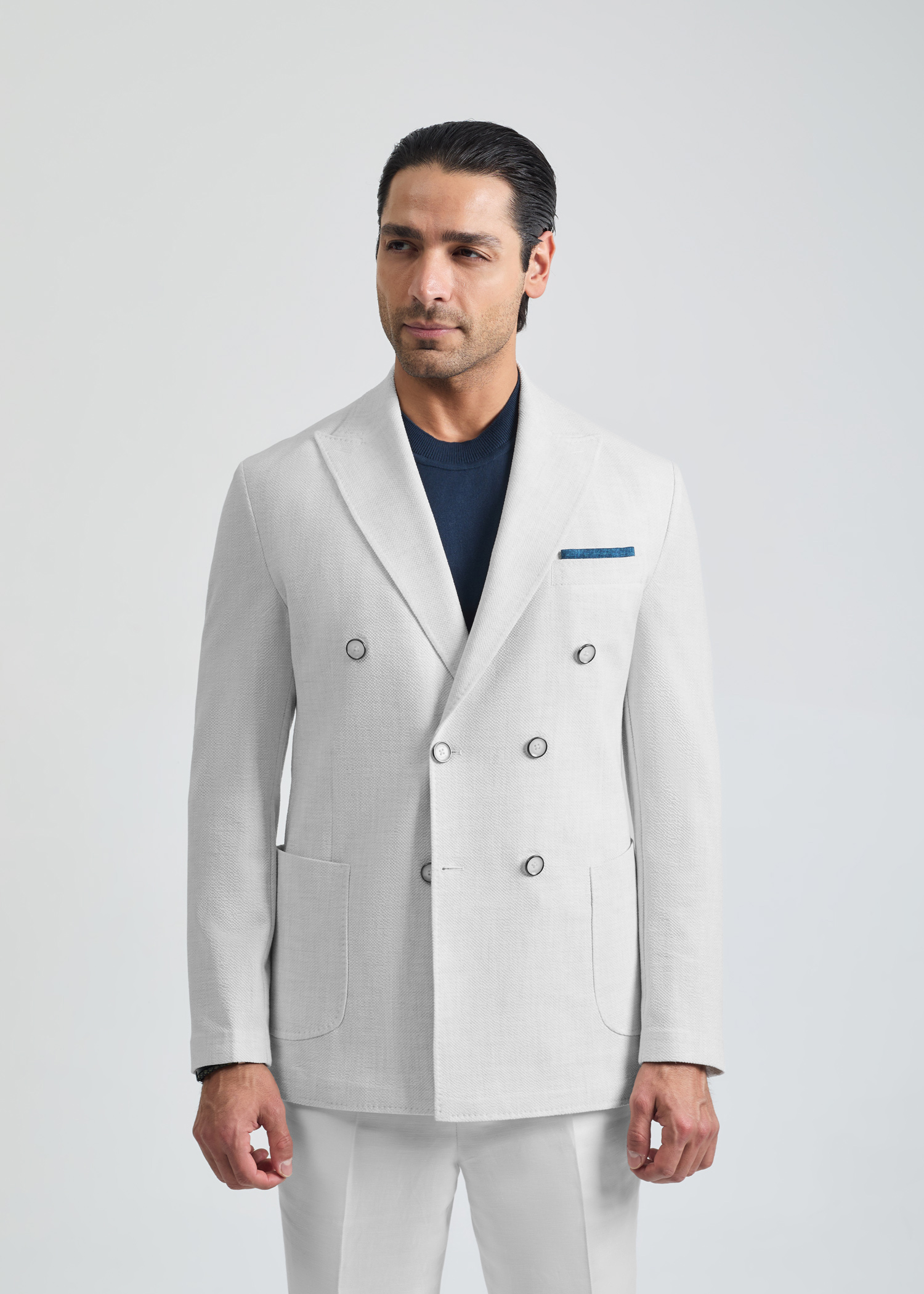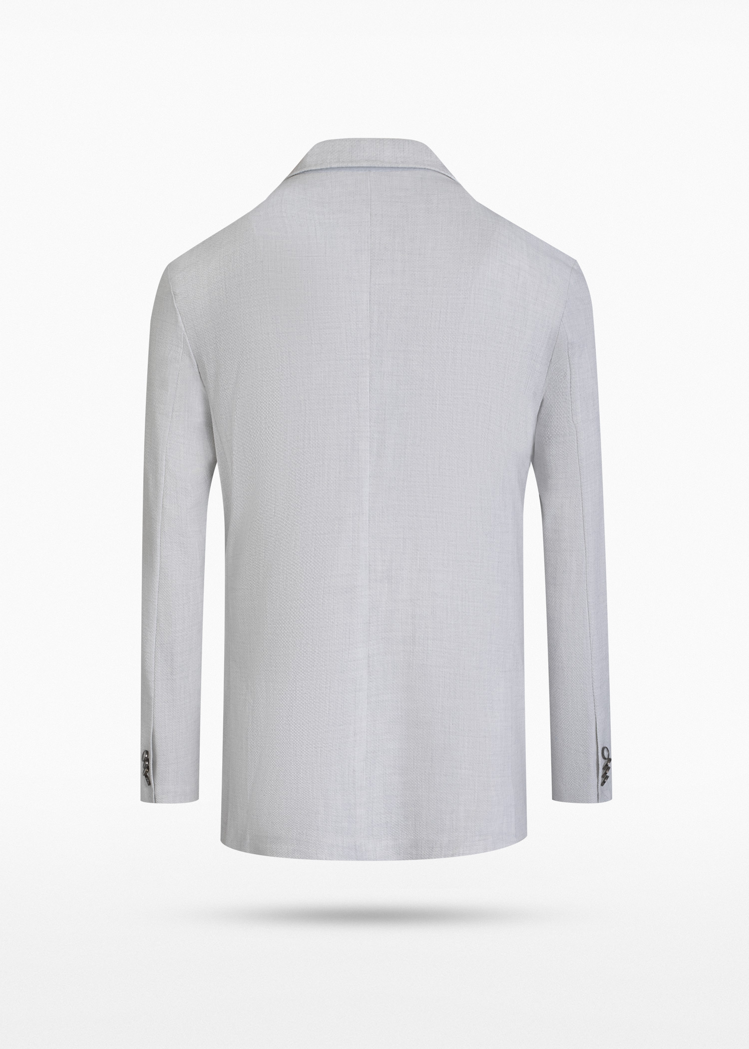 کت تک دبل برست، دو چاک در پشت، دارای جیب روی پیش سینه جهت استفاده از پوشت، بدون آستر