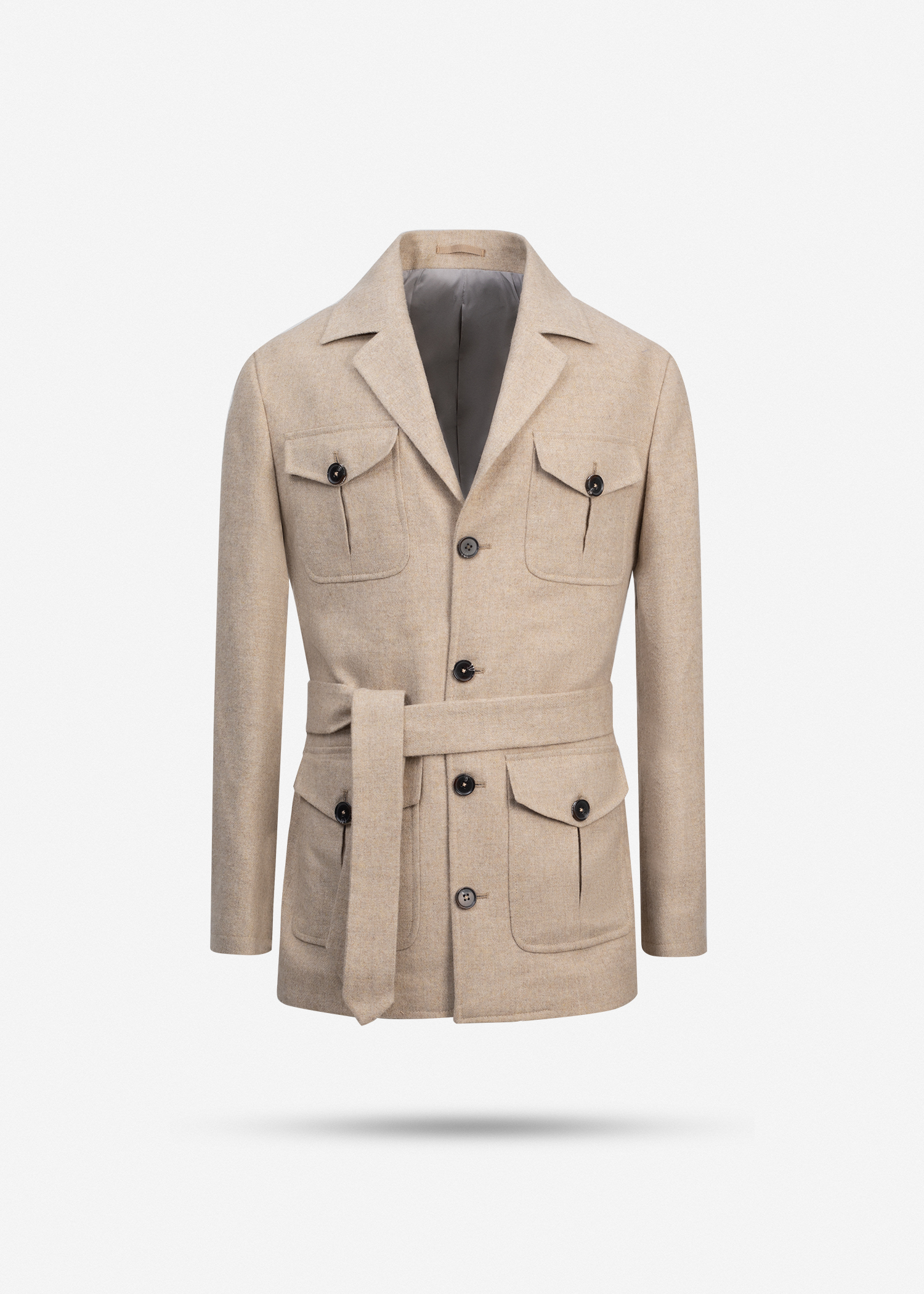 کت سافاری مردانه، دارای 4 جیب پاکتی بیرونی، دارای کمربند برای فیت بهتر، دارای آستر پارچه‌ای