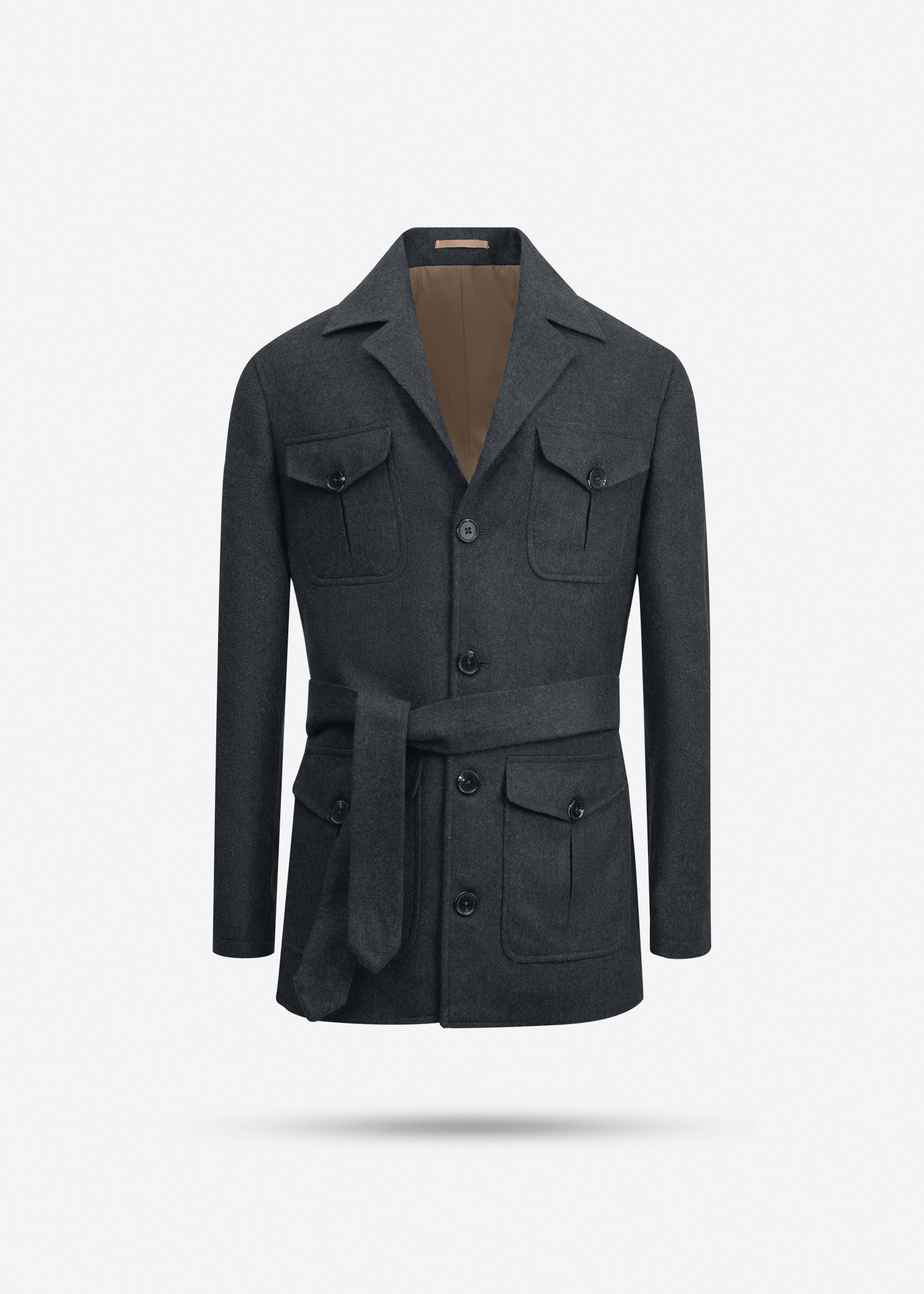 کت سافاری مردانه، دارای 4 جیب پاکتی بیرونی، دارای کمربند برای فیت بهتر، دارای آستر پارچهای