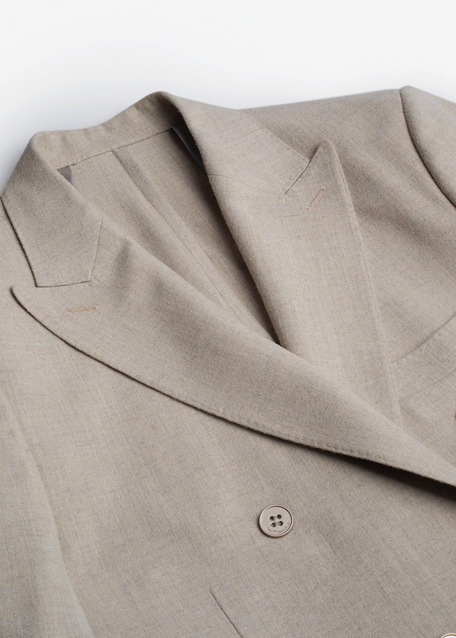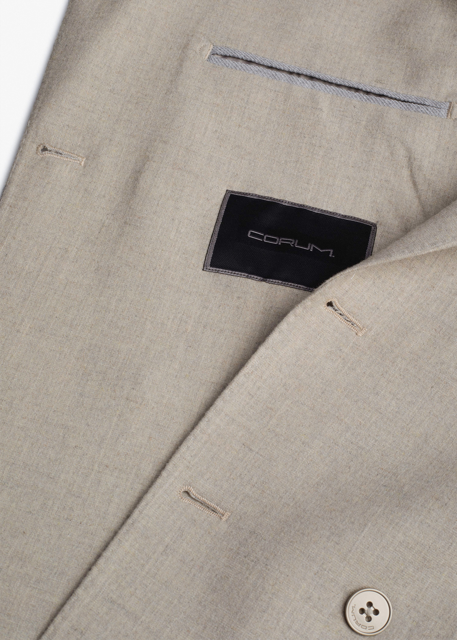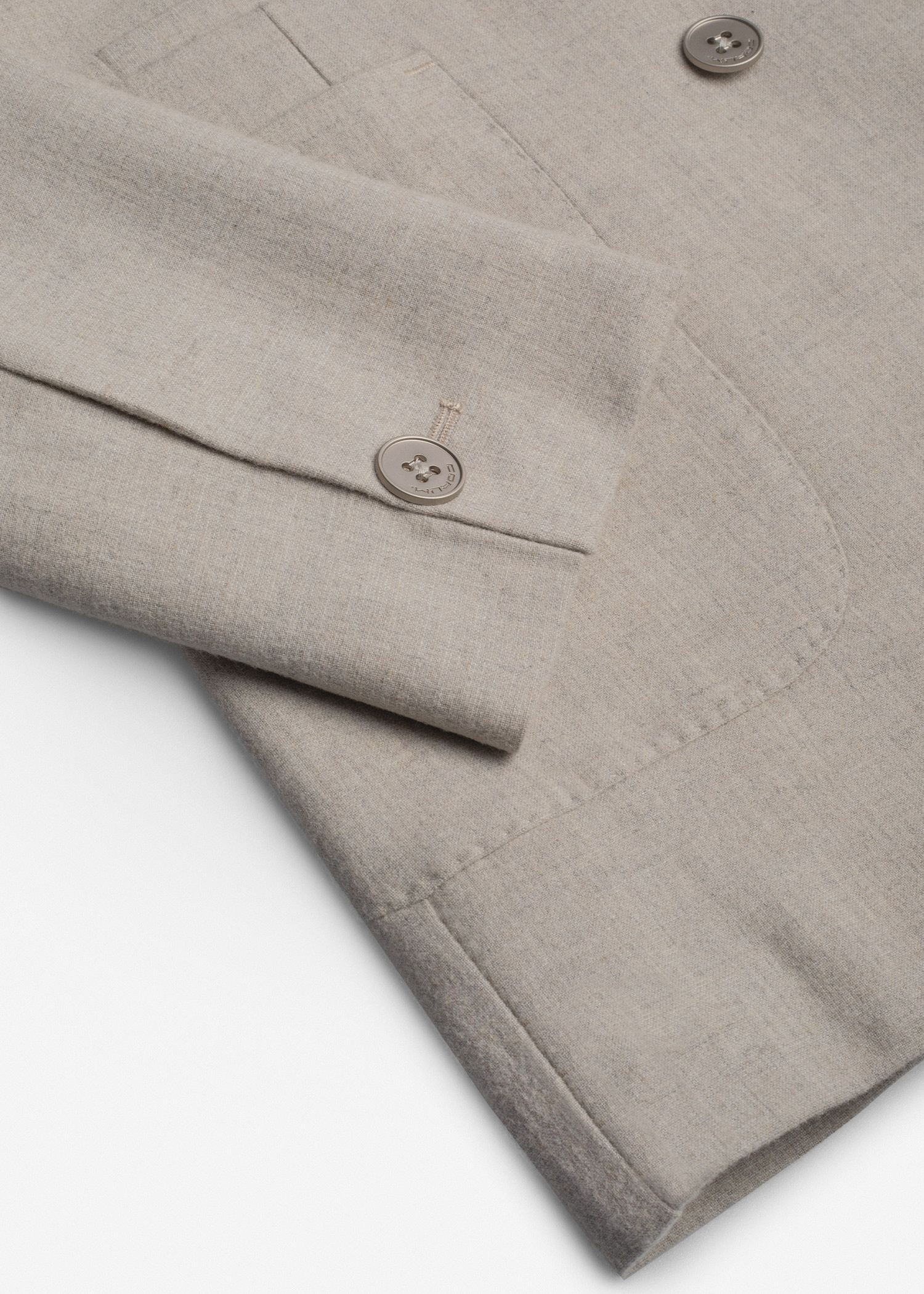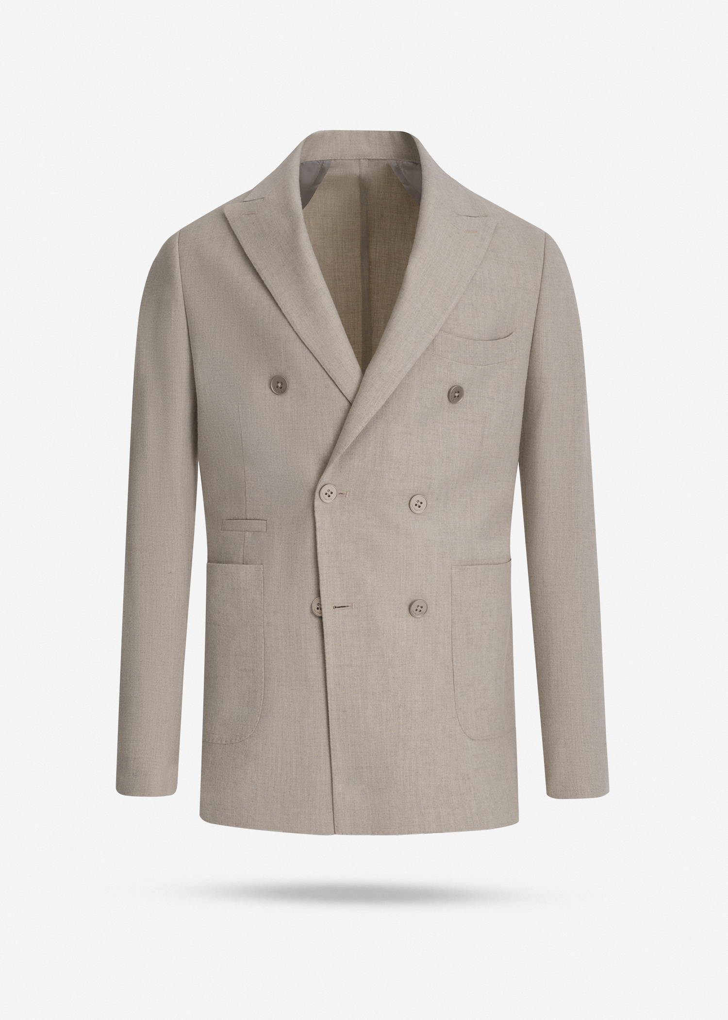 کت تک دبل برست، دو چاک در پشت، دارای دو جیب و یک جیب روی پیش سینه جهت استفاده از پوشت، داخل نیم آستر