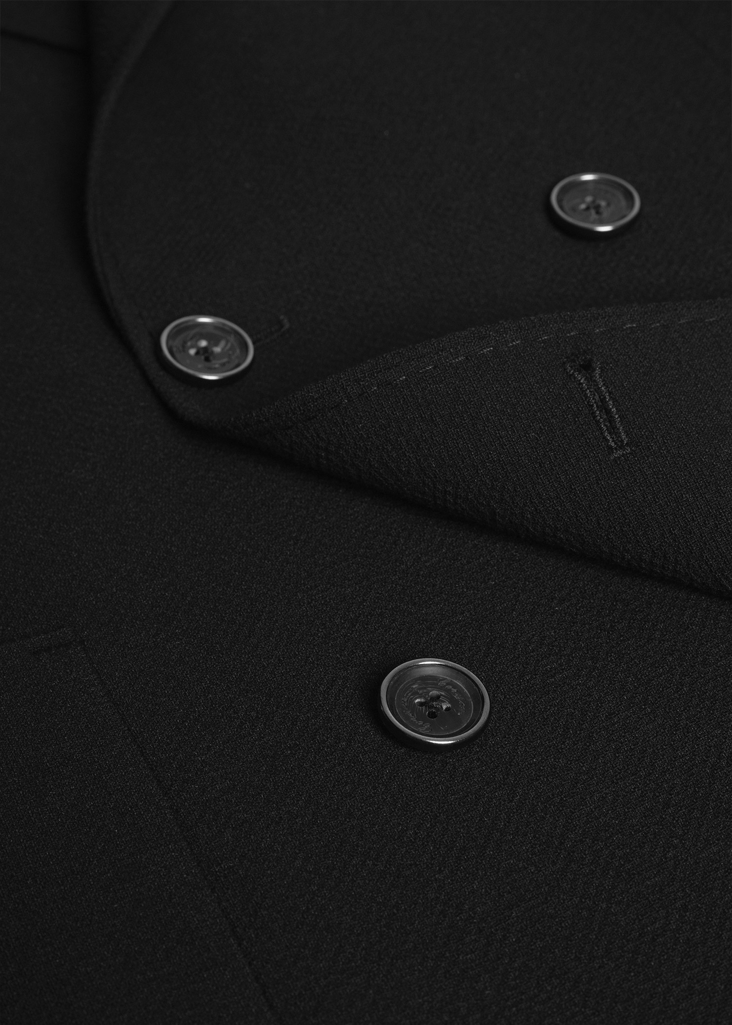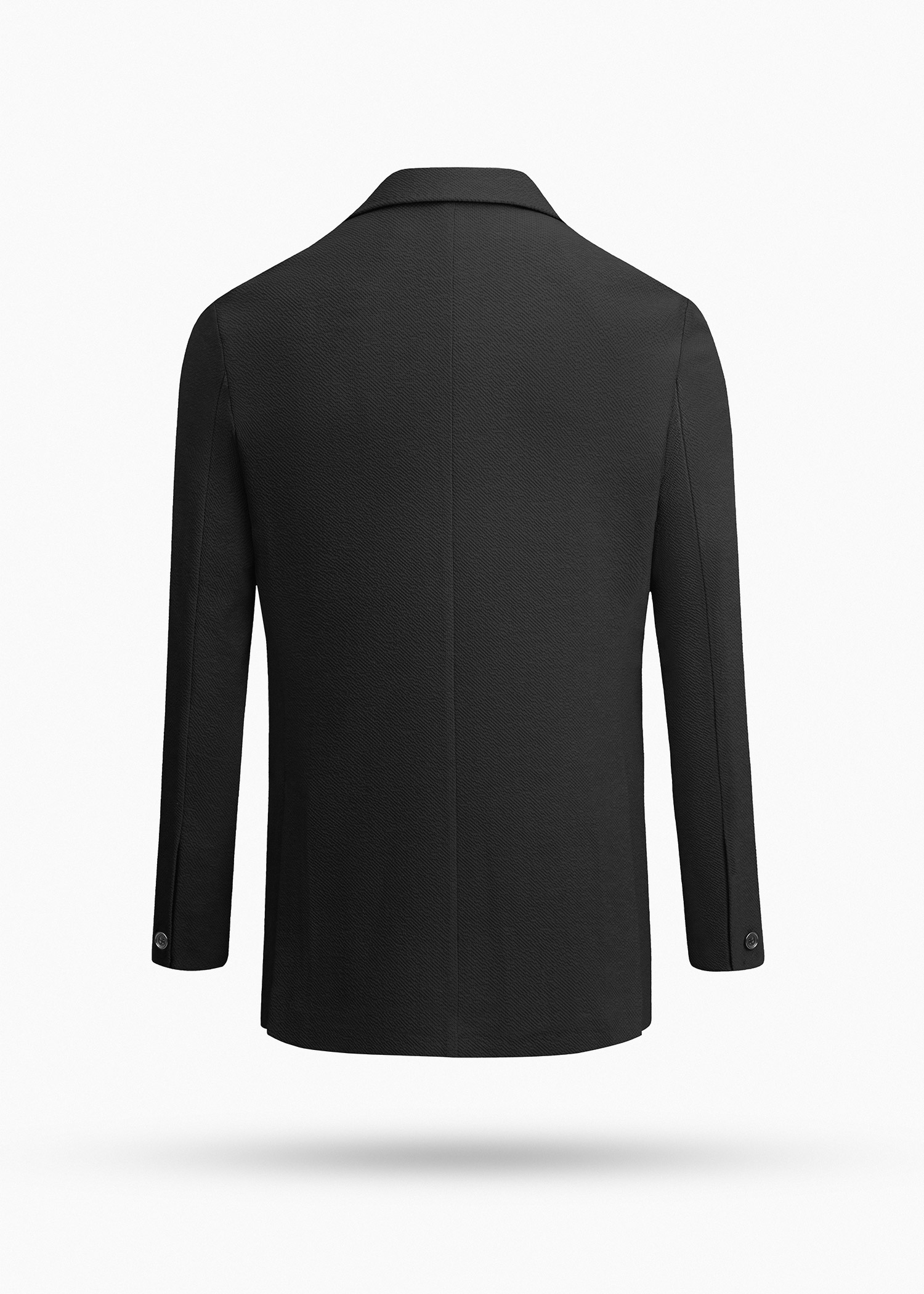 کت تک دبل برست، دو چاک در پشت، دارای دو جیب و یک جیب روی پیش سینه جهت استفاده از پوشت، داخل نیم آستر
