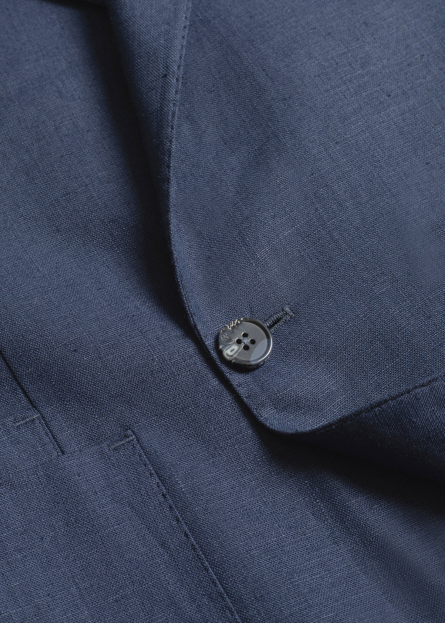 کت تک دبل برست، دو چاک در پشت، دارای دوخت تزئینی بانتو، دارای دو جیب قایقی روکار و جیب های داخلی و یک جیب روی سینه جهت استفاده از پوشت، طراحی به صورت نیمه آستر