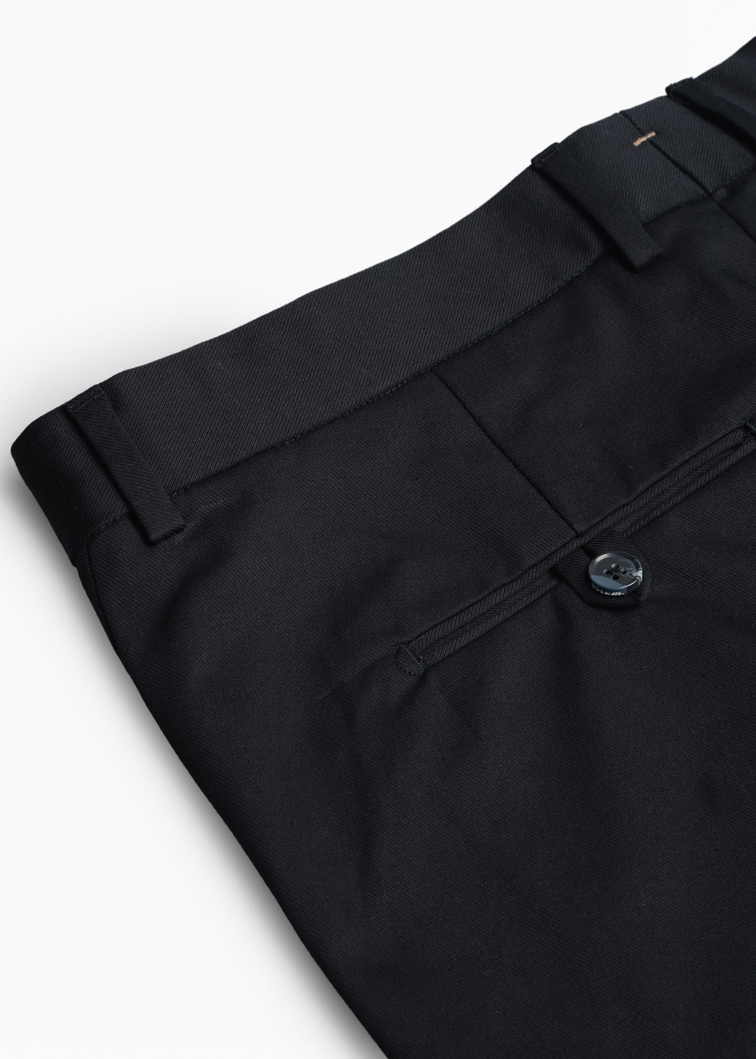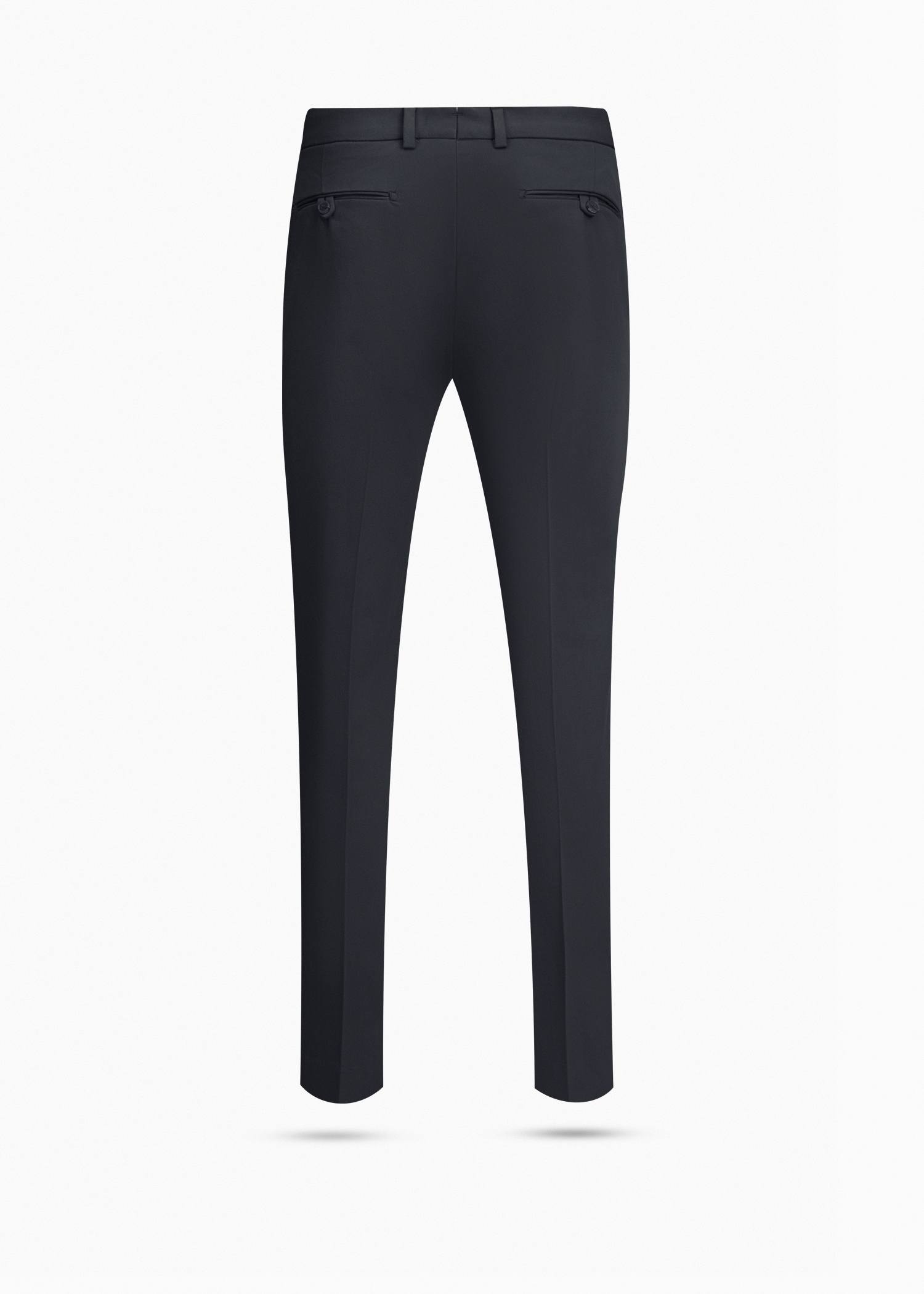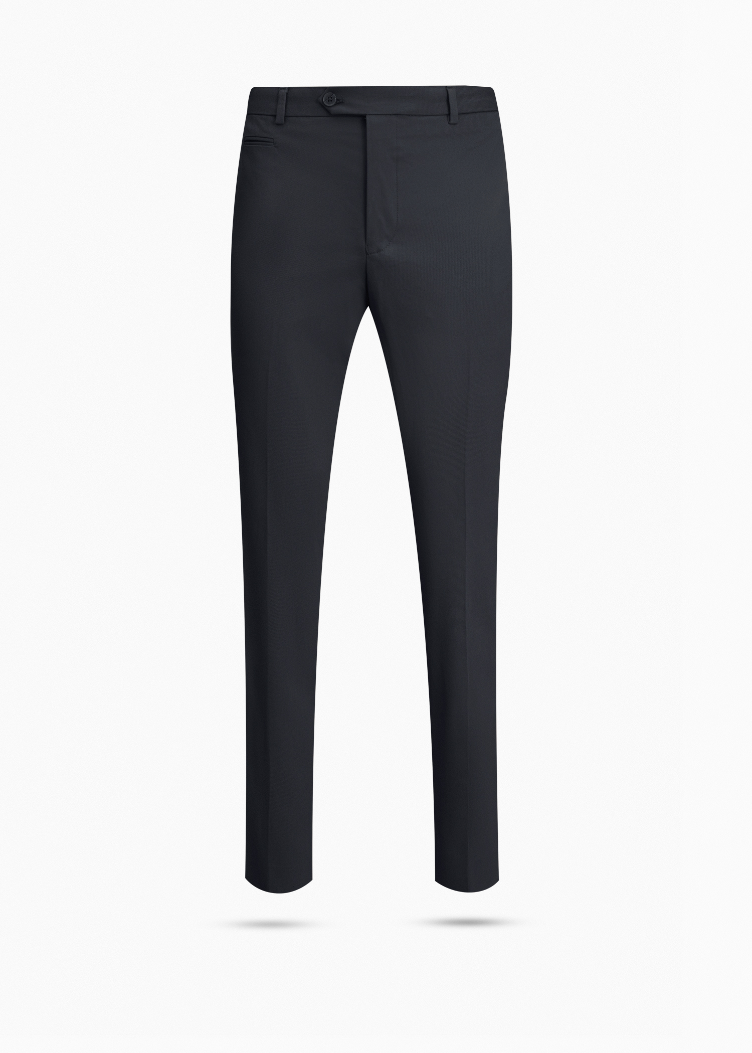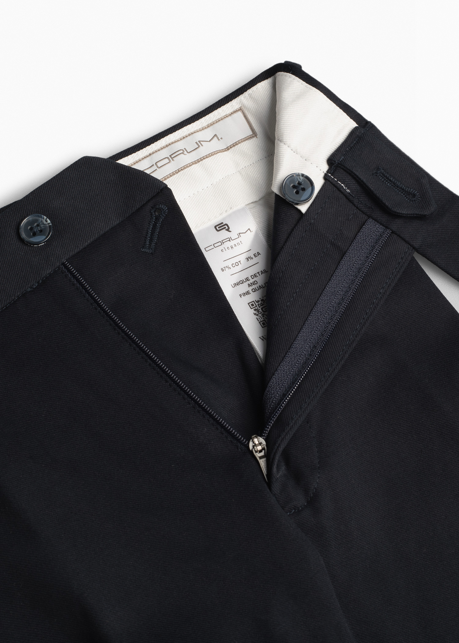 شلوار کتان، پیش کار تک دکمه، دارای جیب پاکتی، دارای بند کمر جهت استفاده از کمربند، دارای 3% الاستین جهت راحتی بیشتر