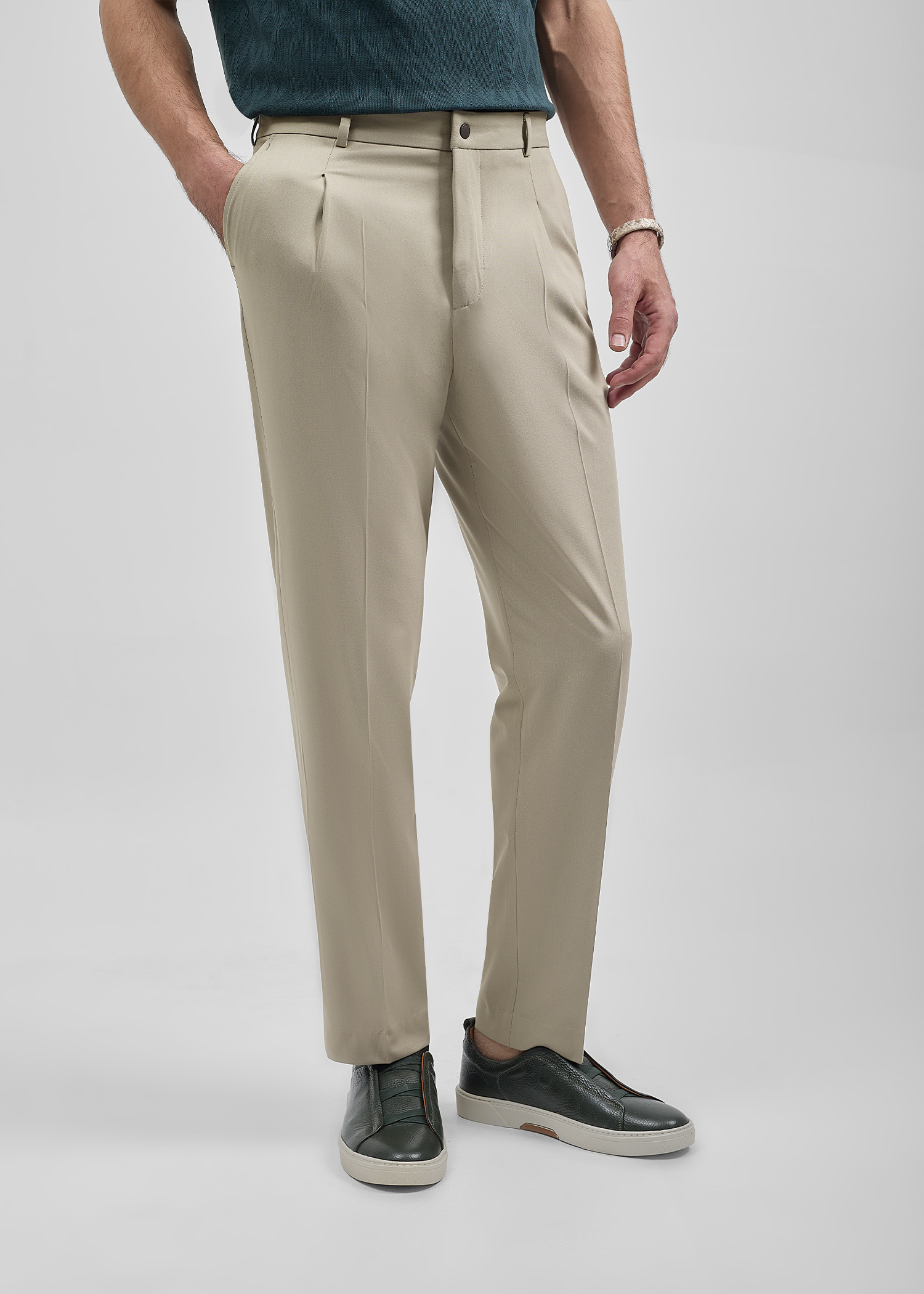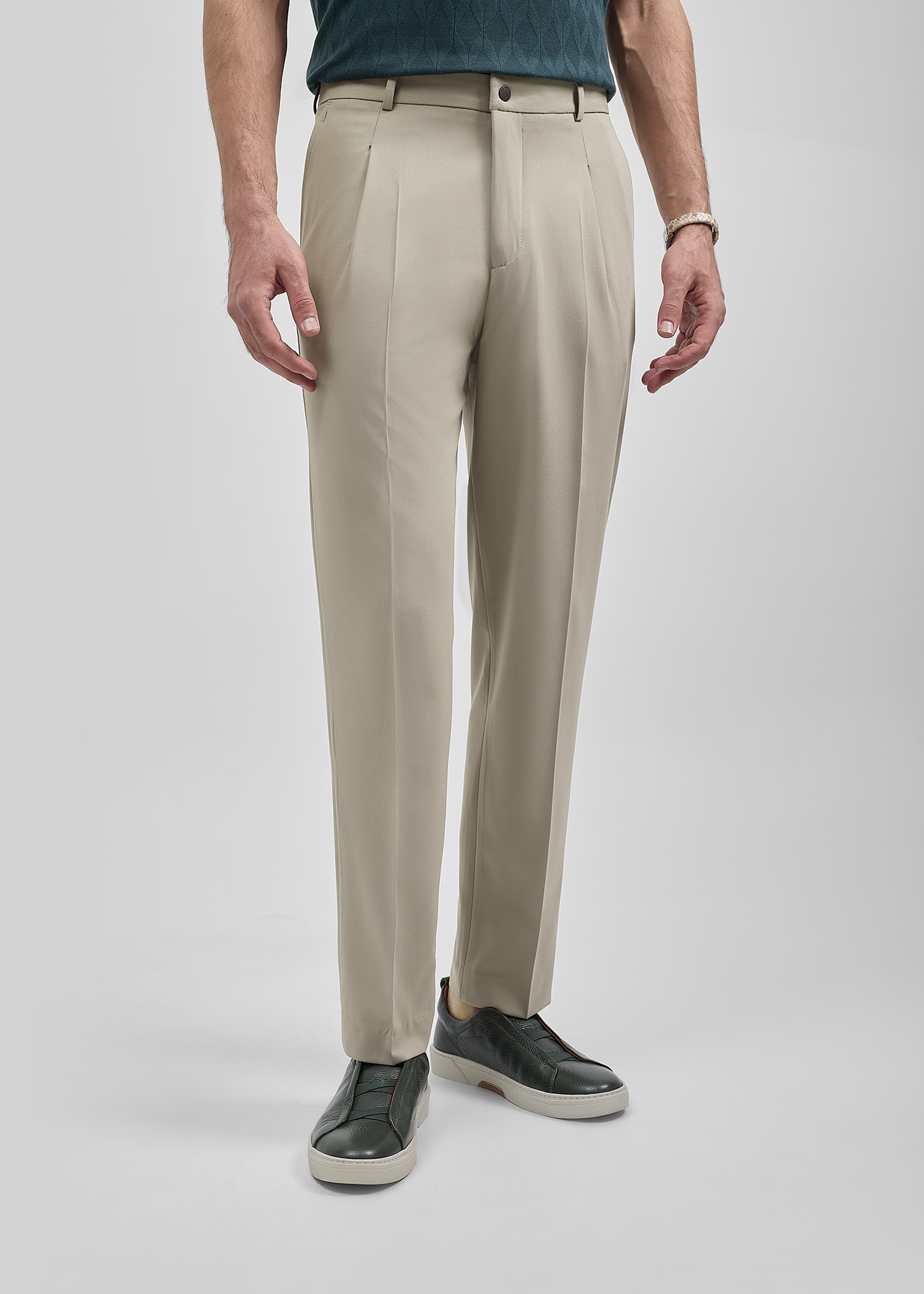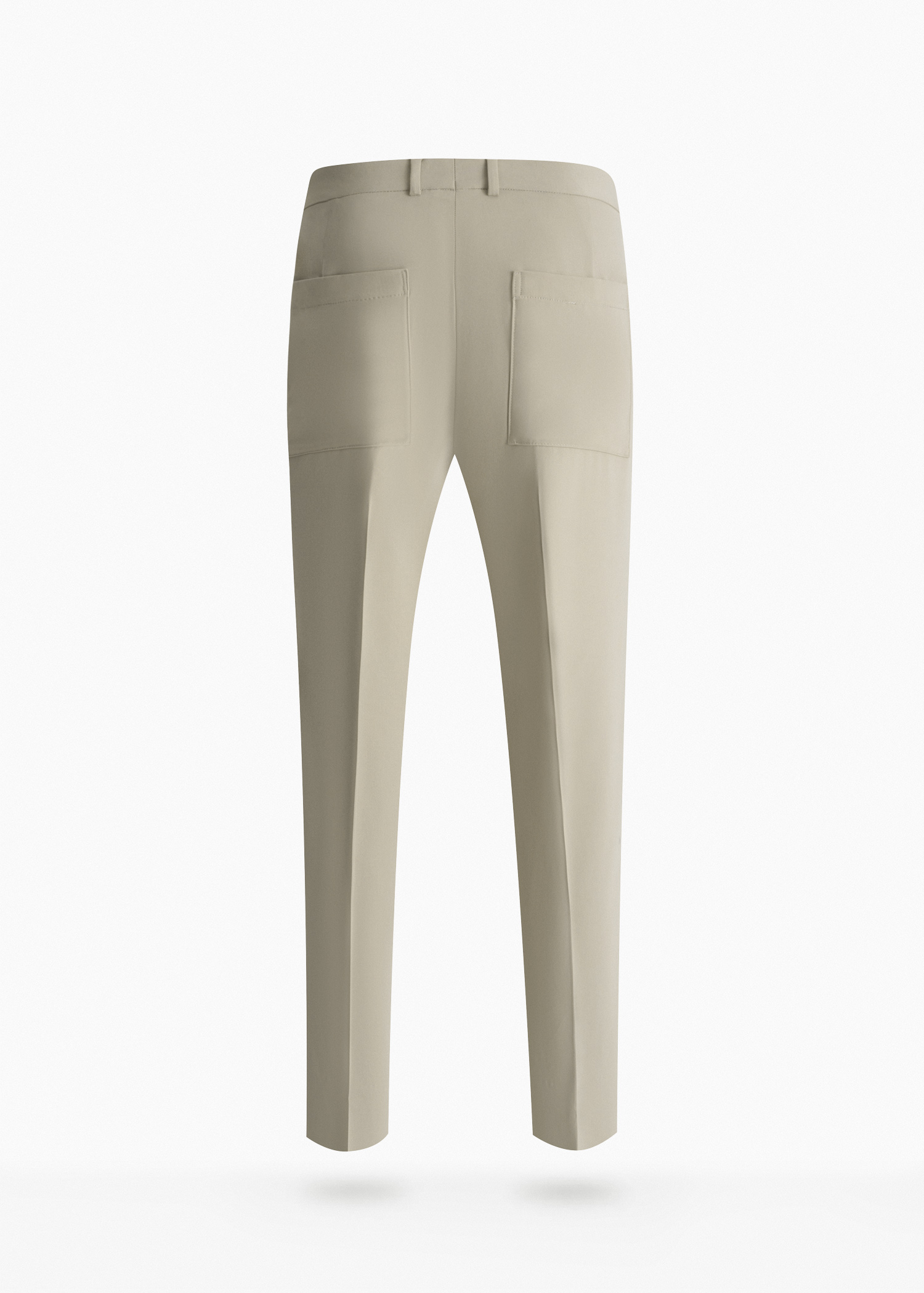 شلوار پارچه ای، پیش کار تک دکمه، دارای دکمه پرسی، دارای 7% اسپاندکس جهت راحتی بیشتر