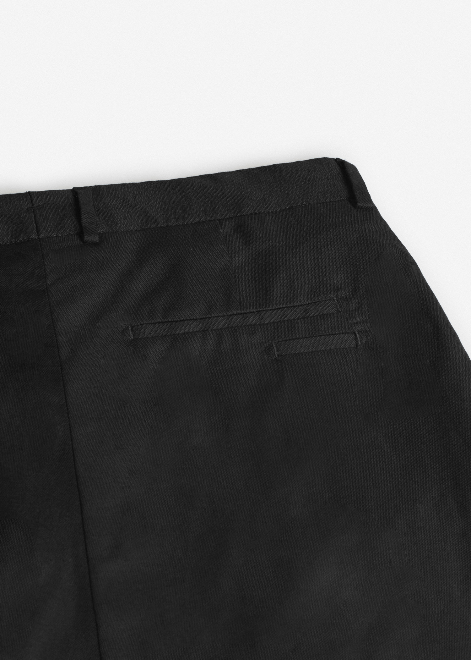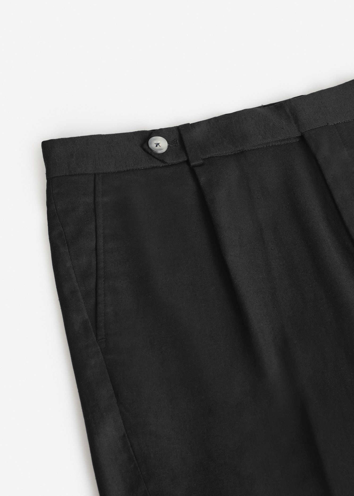 شلوار پارچه ای لینن، پیش کار دارای دکمه و قزن، پیله‌دار، الیاف خنک و سبک، دارای بند کمر جهت استفاده از کمربند