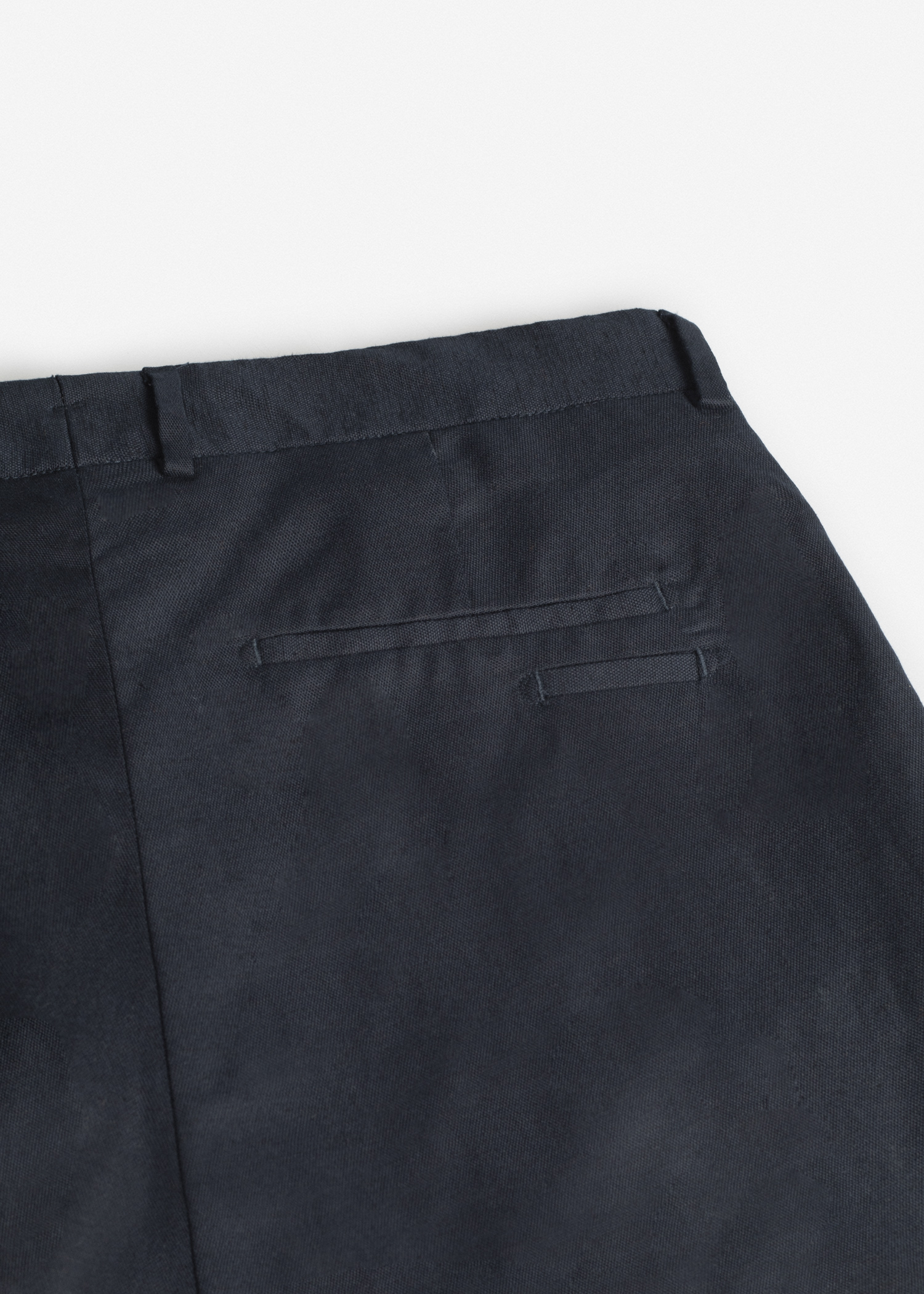 شلوار پارچه ای لینن، پیش کار دارای دکمه و قزن، پیلهدار، الیاف خنک و سبک، دارای بند کمر جهت استفاده از کمربند