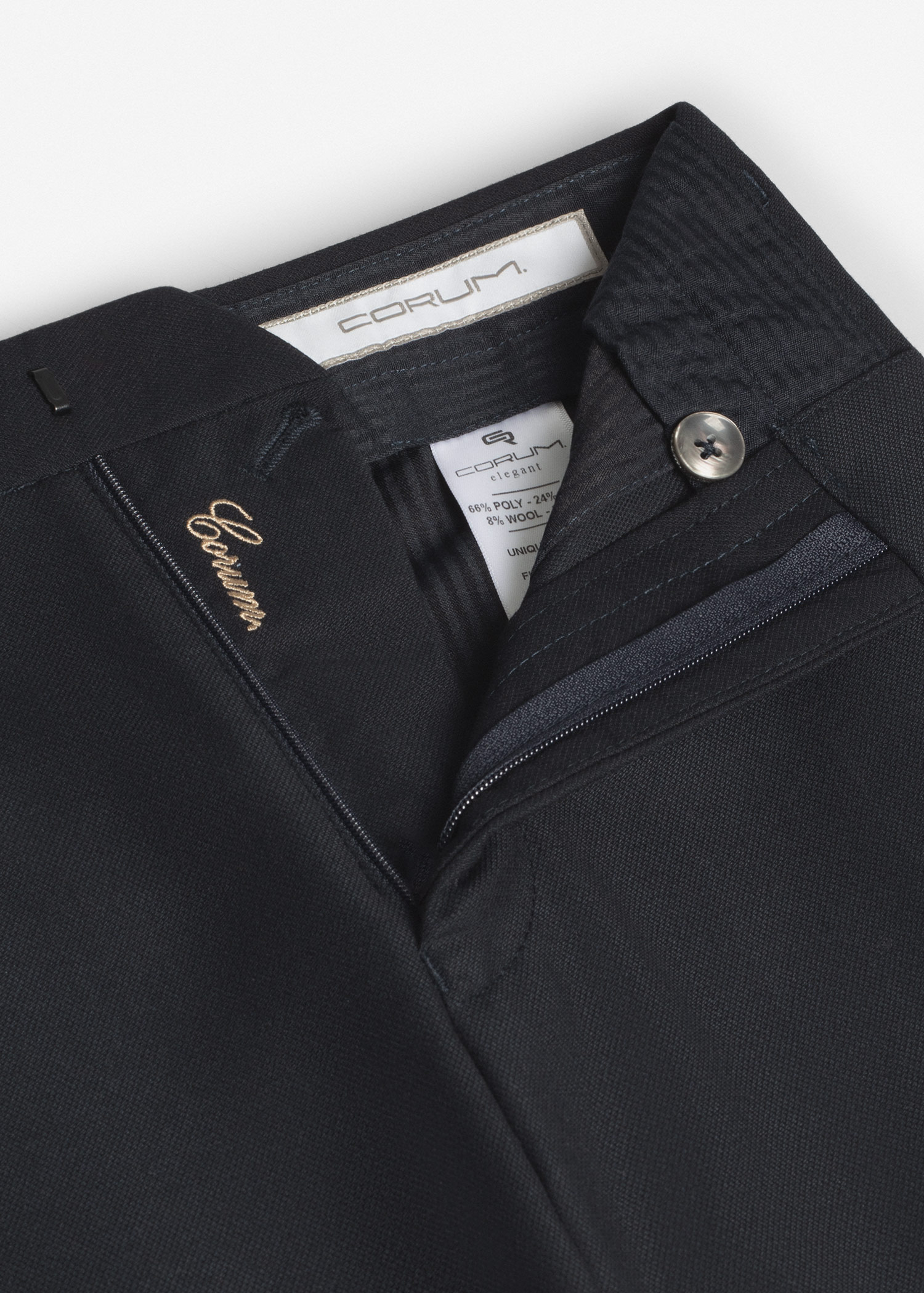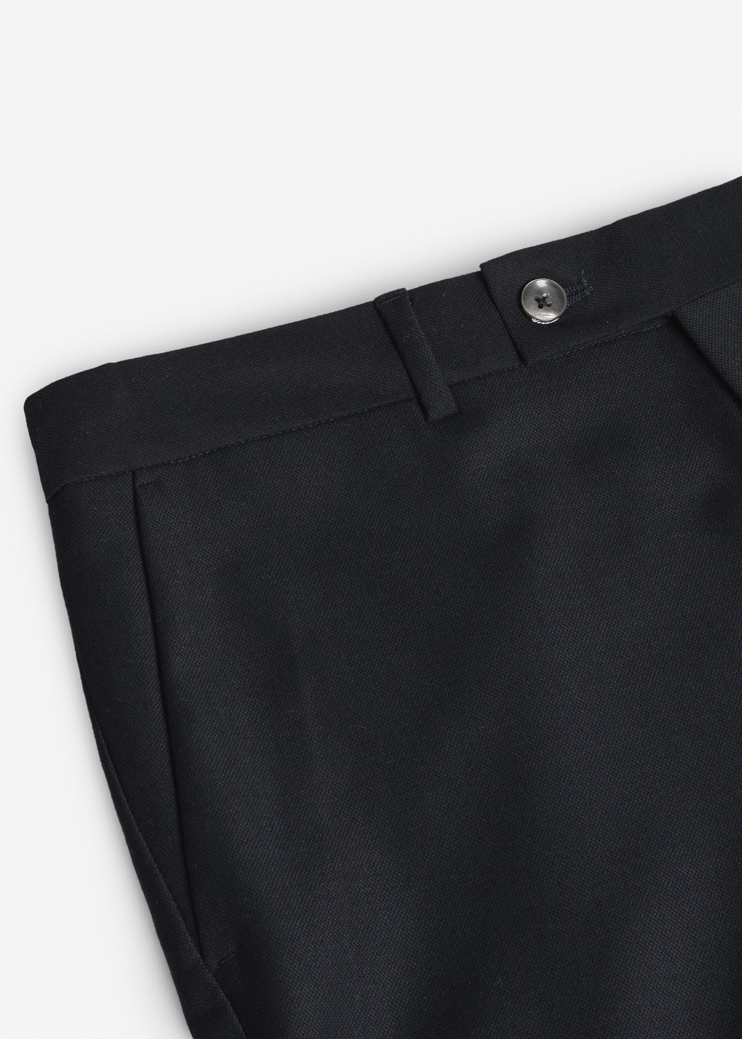 شلوار پارچه ای، پیش کار دارای دکمه و قزن، دارای بند کمر جهت استفاده از کمربند