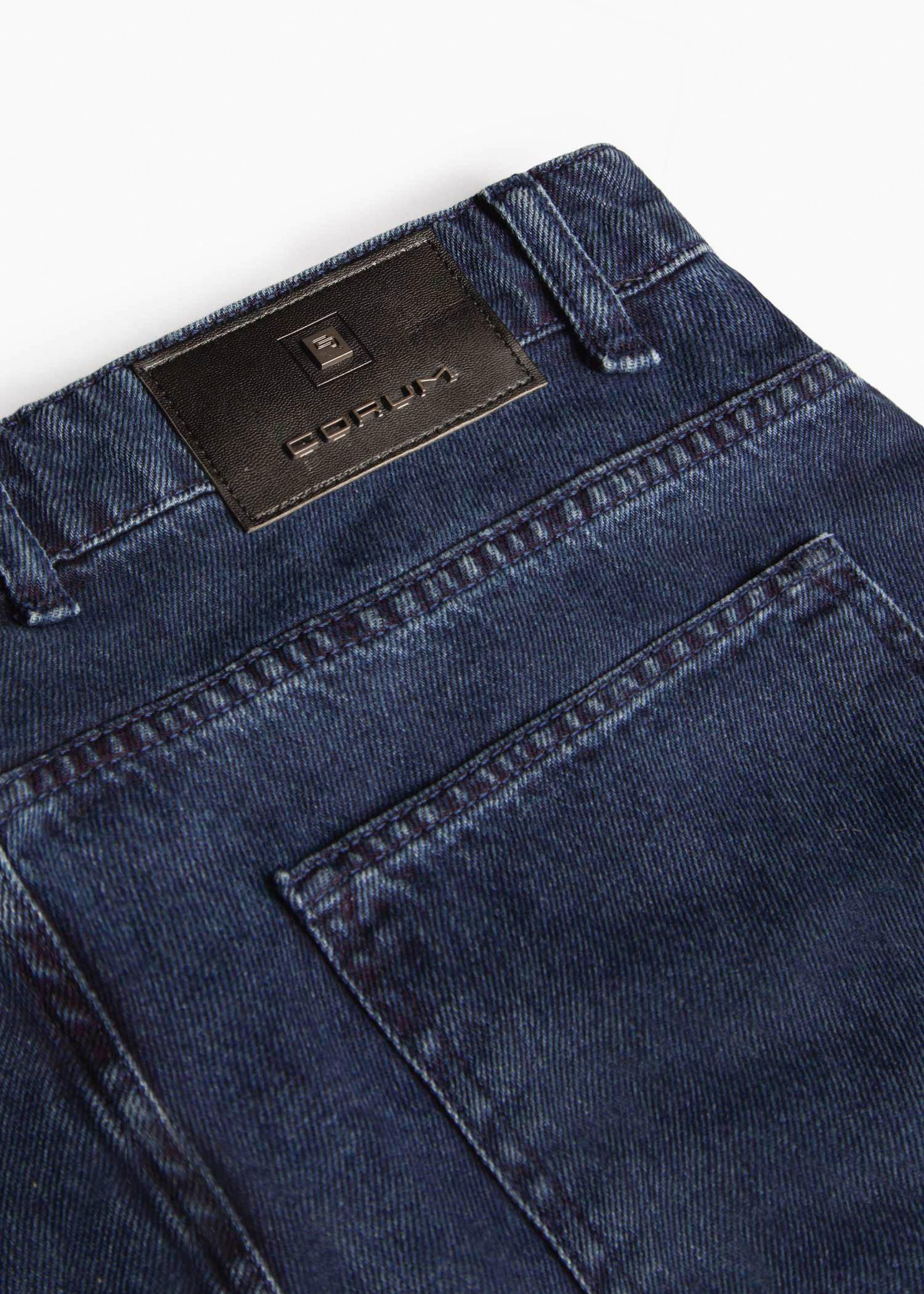 شلوار جین، پارچه تهیه شده از 80% کتان، سنگ شور شده با آنزيم جهت ثبات رنگ، دارای 5 جیب، دارای بند کمر جهت استفاده از کمربند