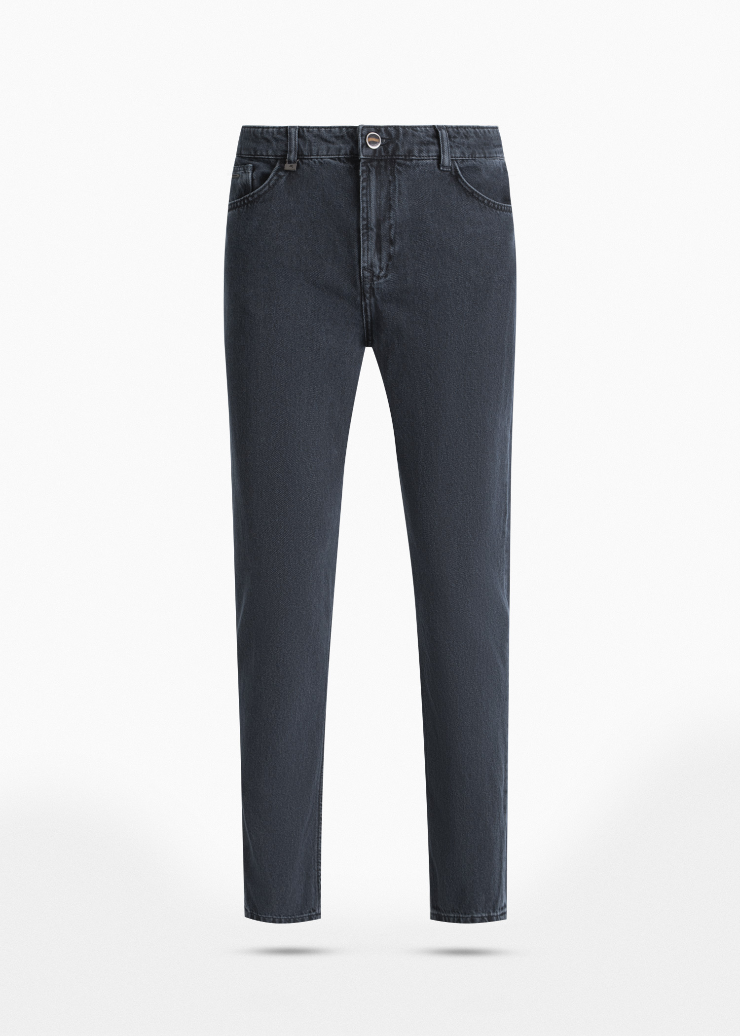 شلوار جین، پارچه تهیه شده از 80% کتان، سنگ شور شده با آنزيم جهت ثبات رنگ، دارای 5 جیب، دارای بند کمر جهت استفاده از کمربند