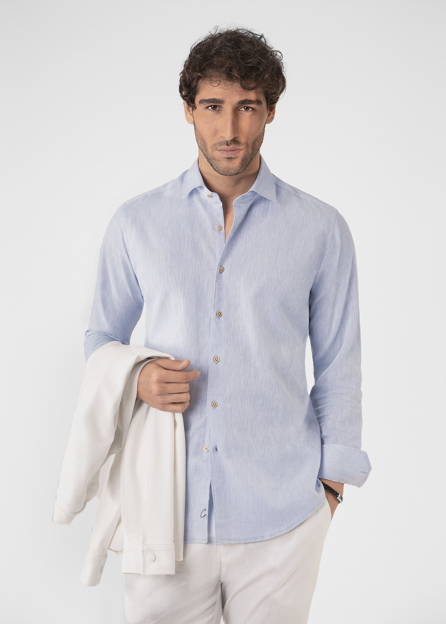 پیراهن لینن مردانه 2310103 - آبی روشن