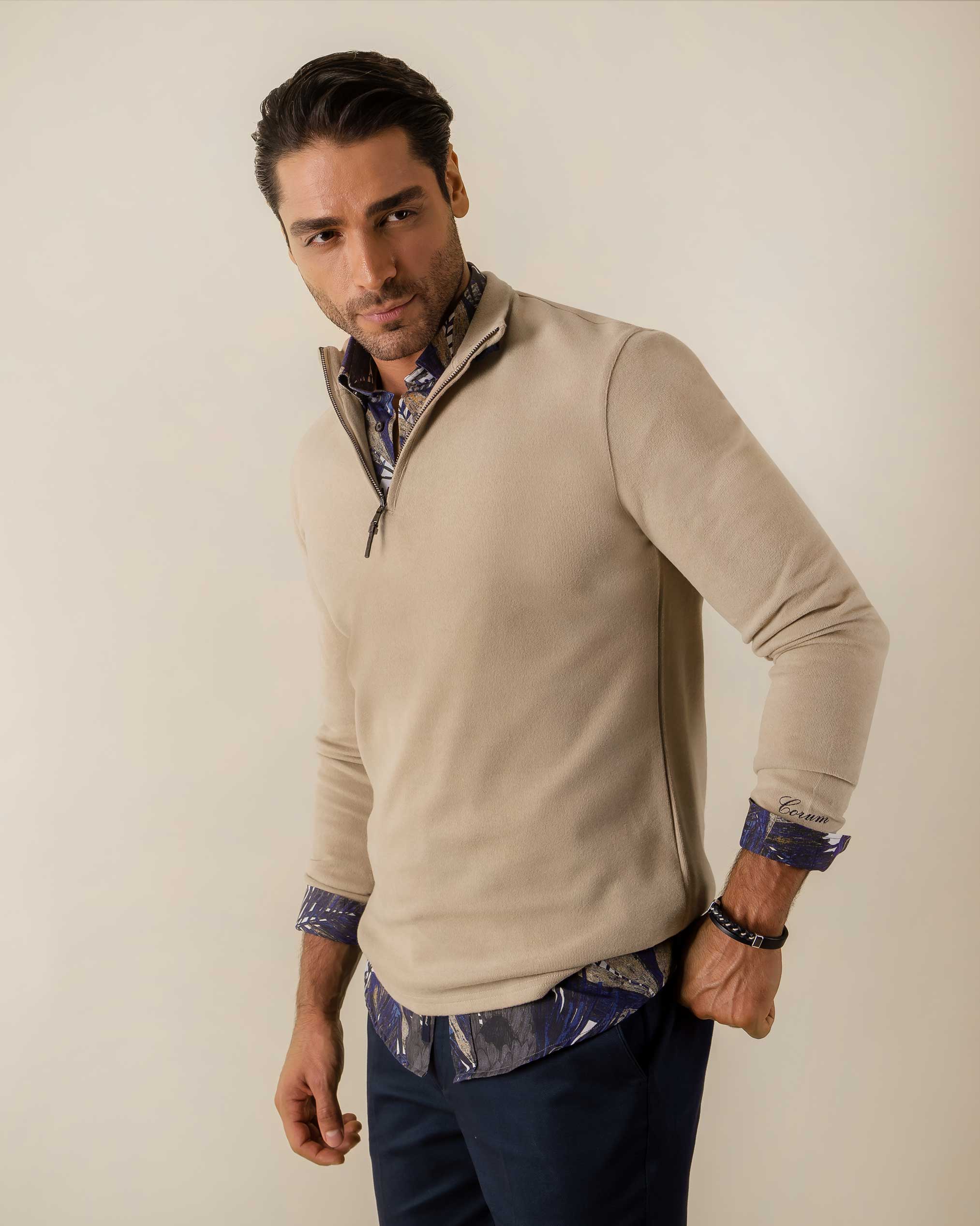 مدل با قد "190" سانتی متر، سایز "L" پوشیده است.