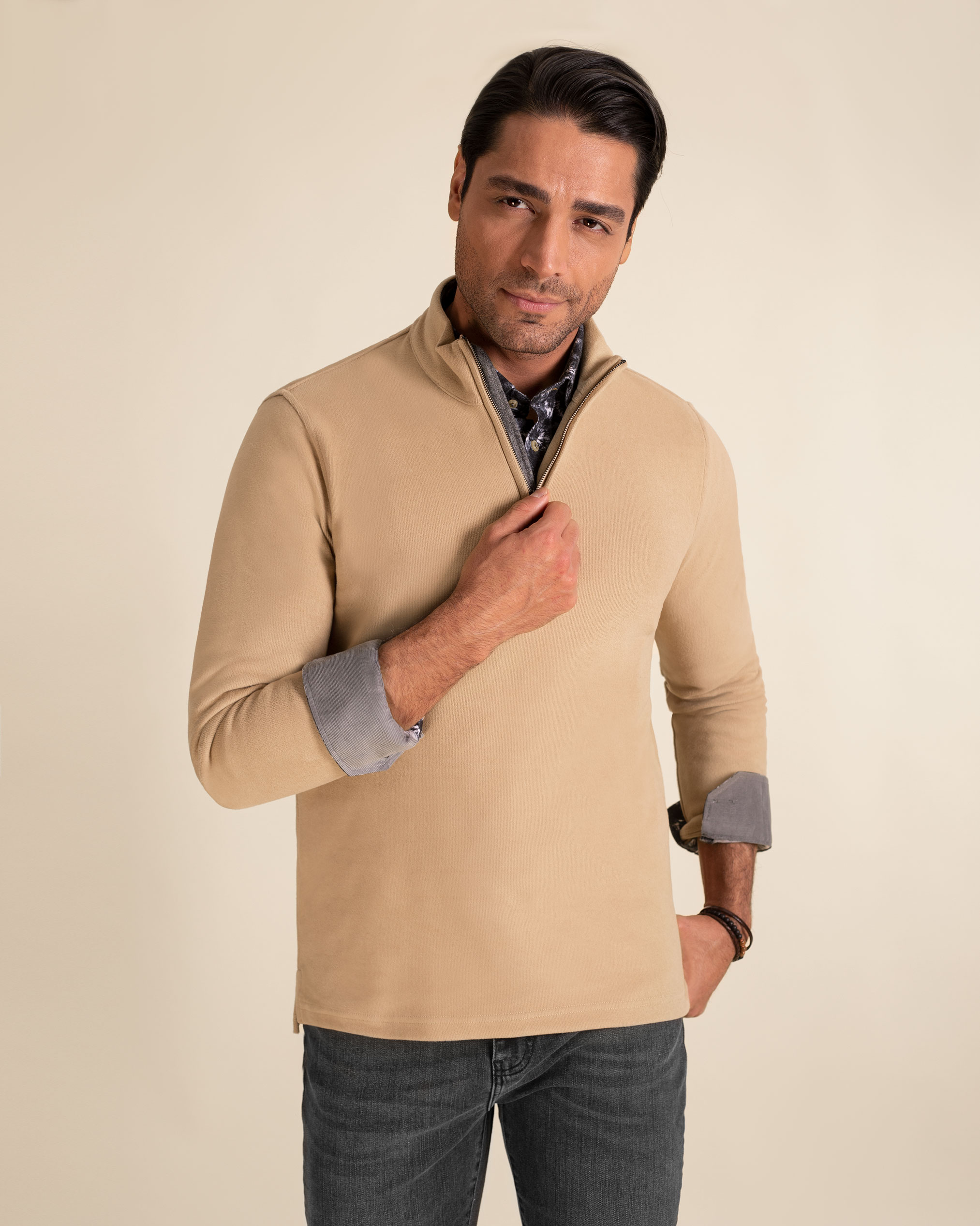 پولوشرت آستین بلند نیم زیپ 2220902 - کرم