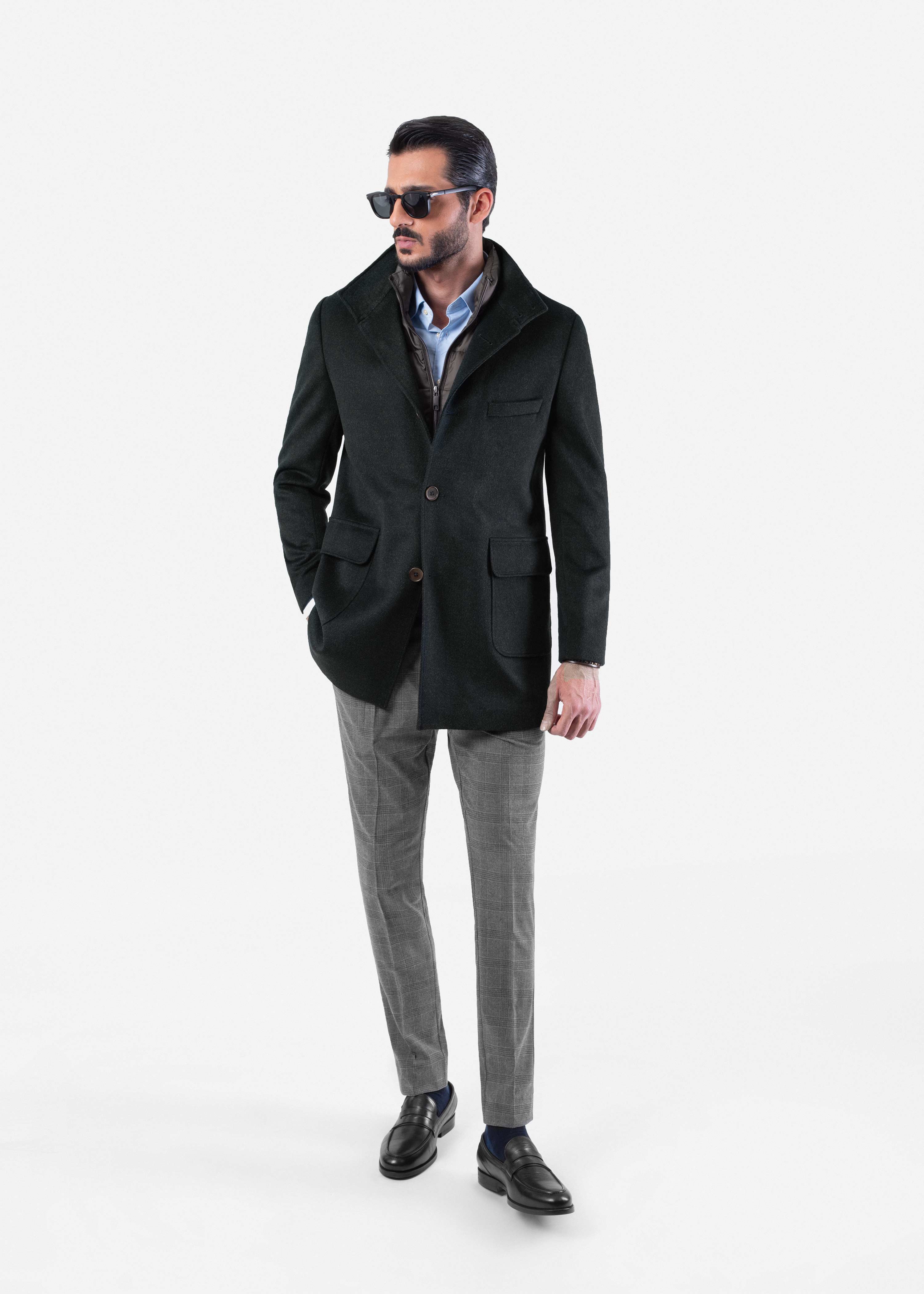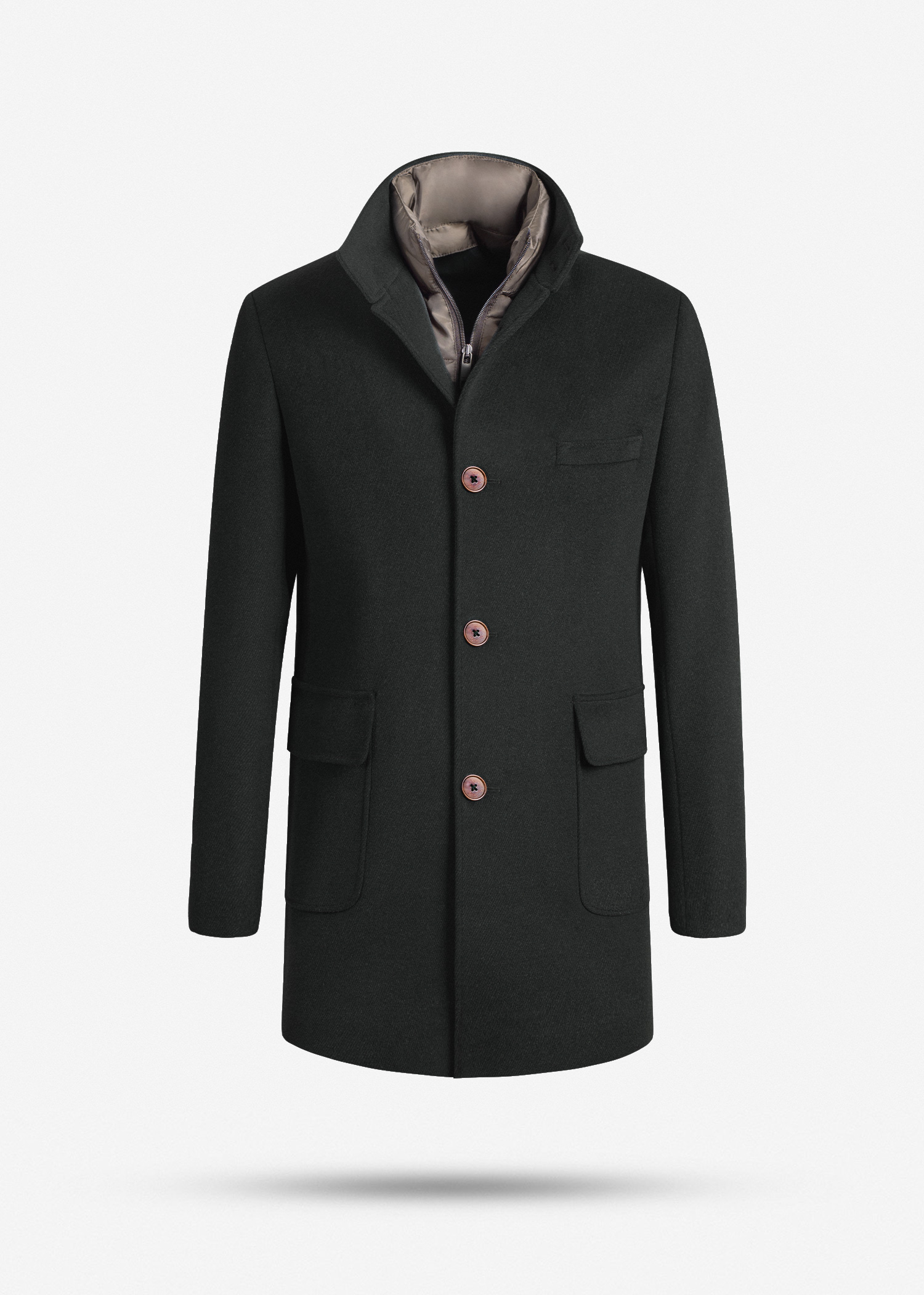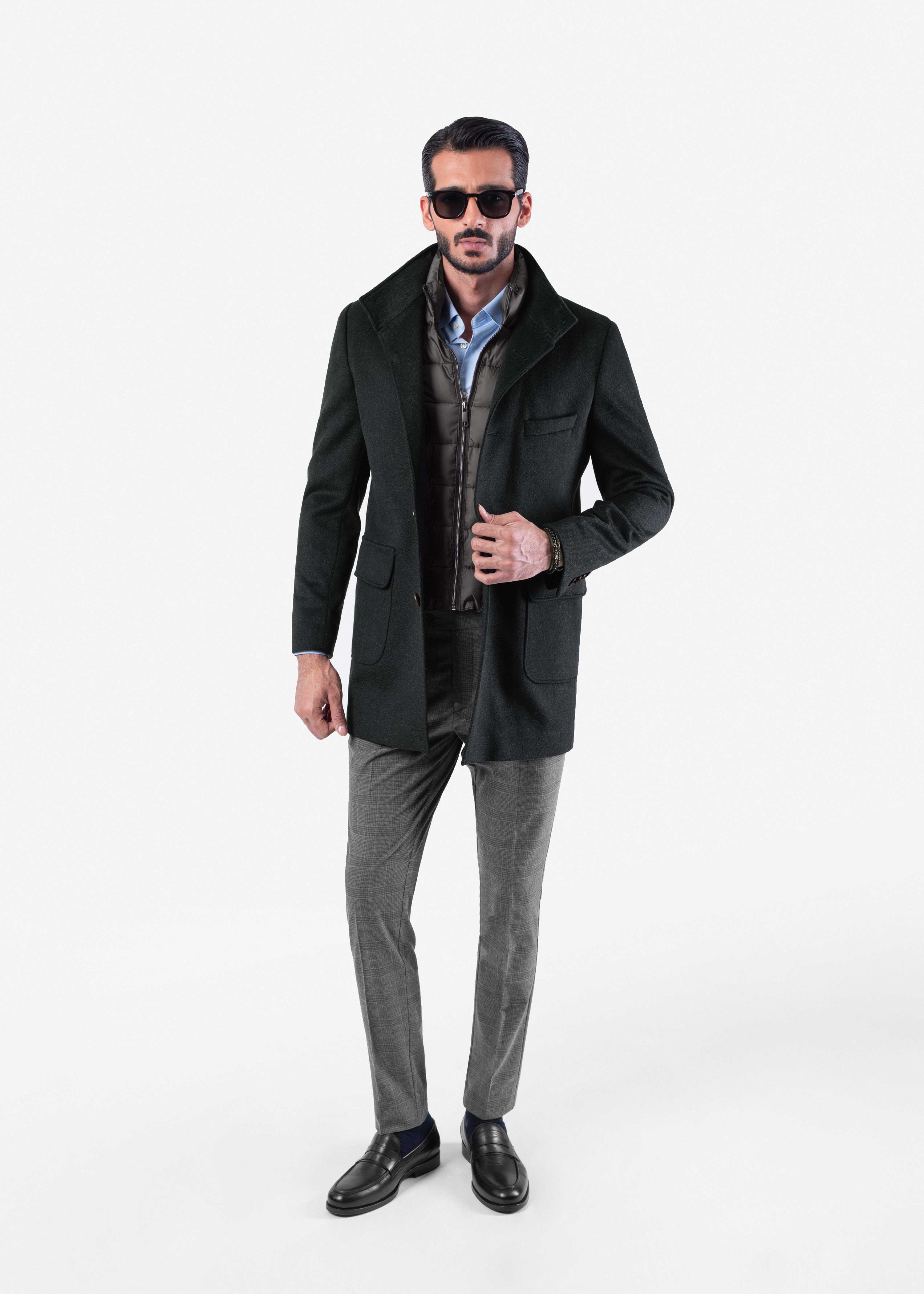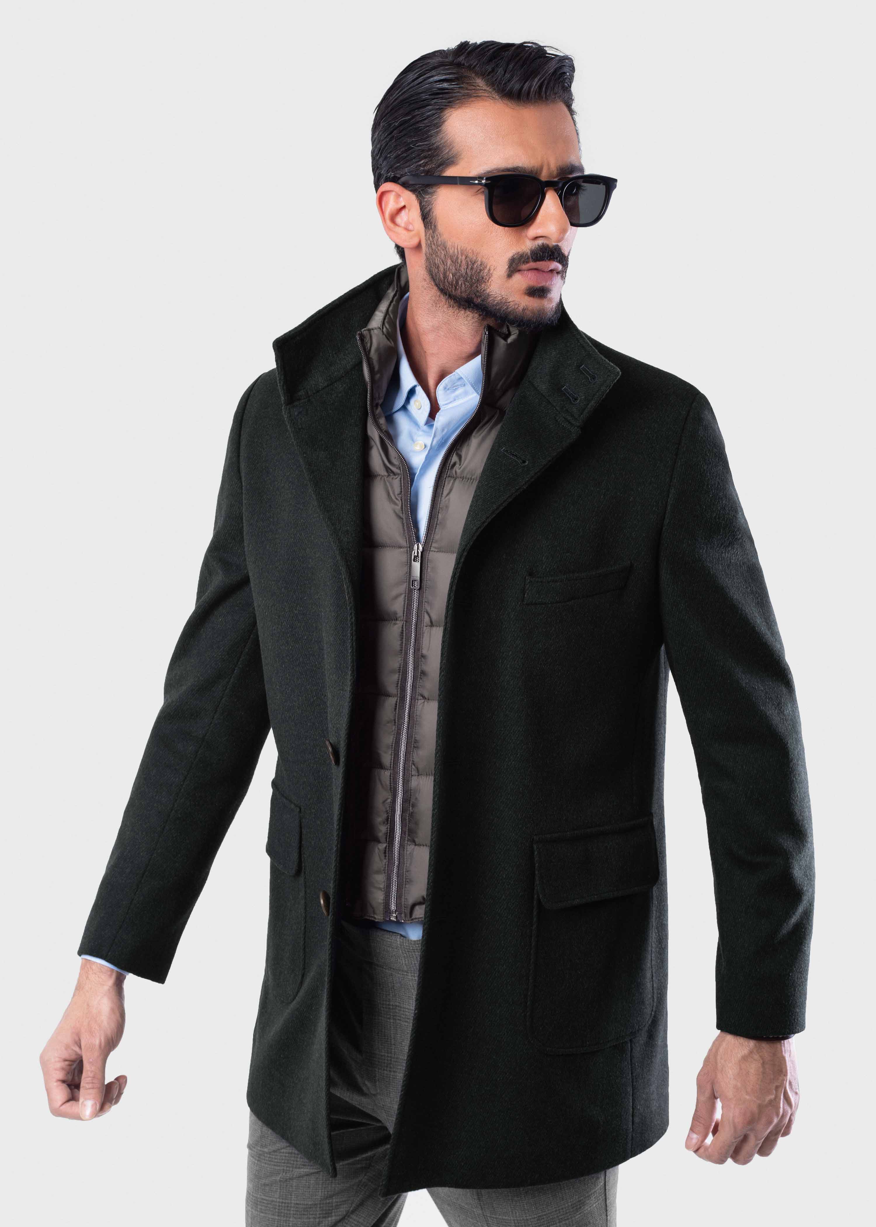پالتو ژیله دار پشمی 2220208 - سبز تیره