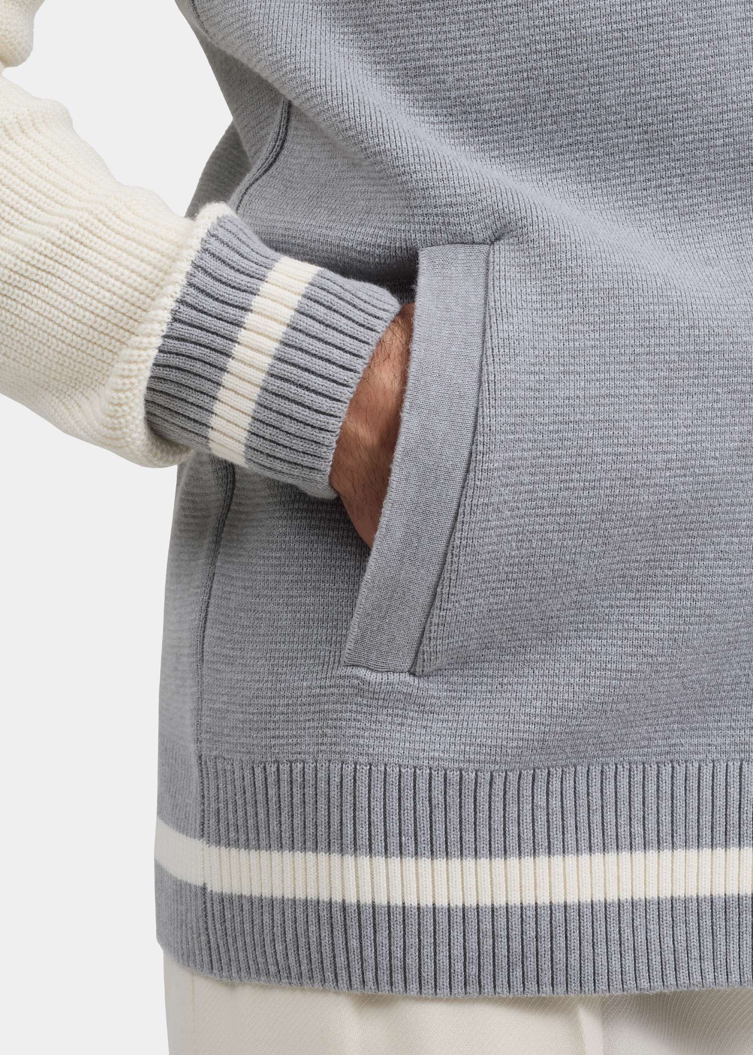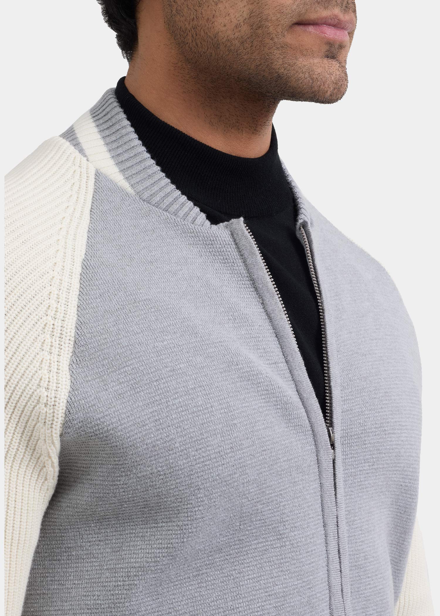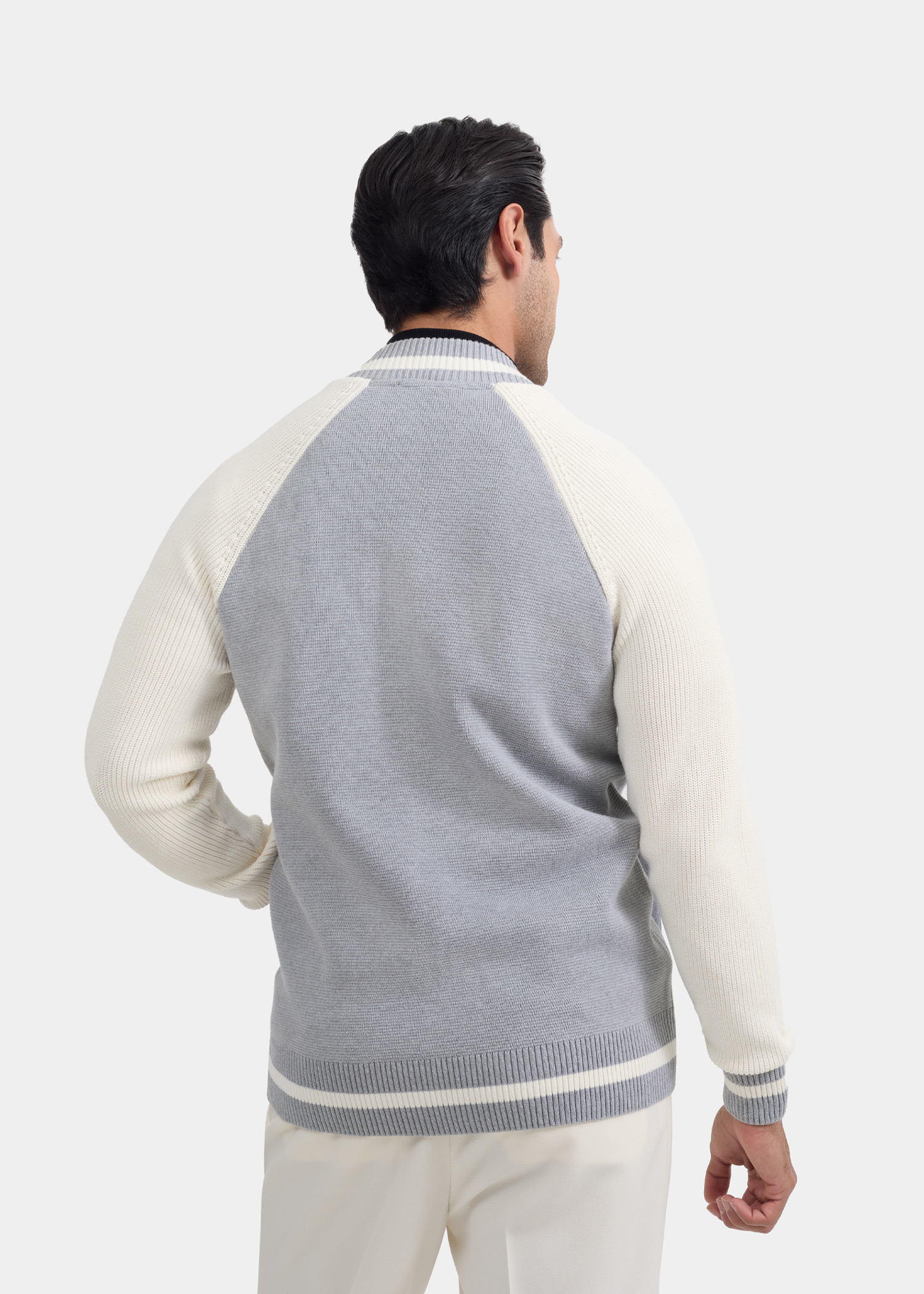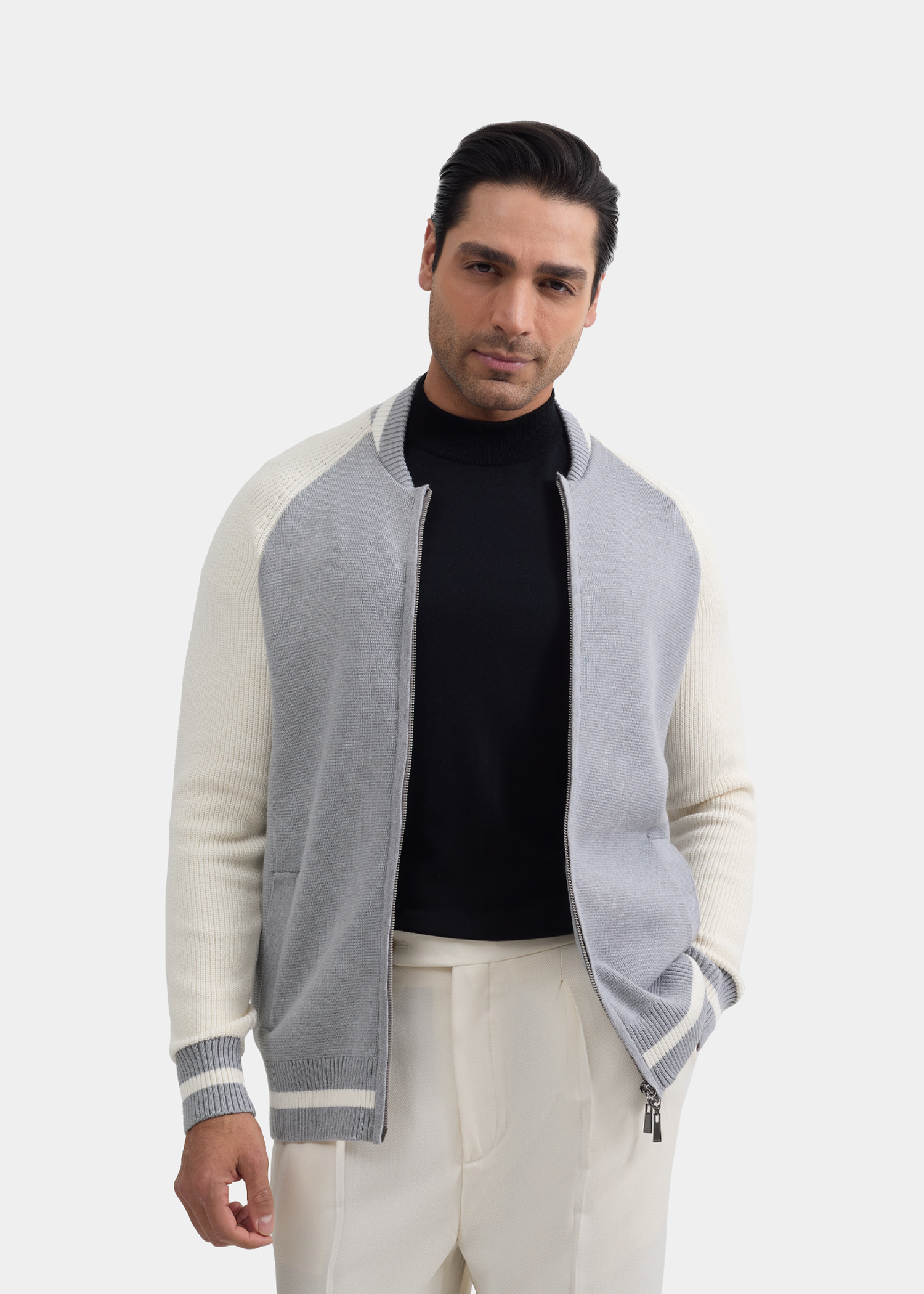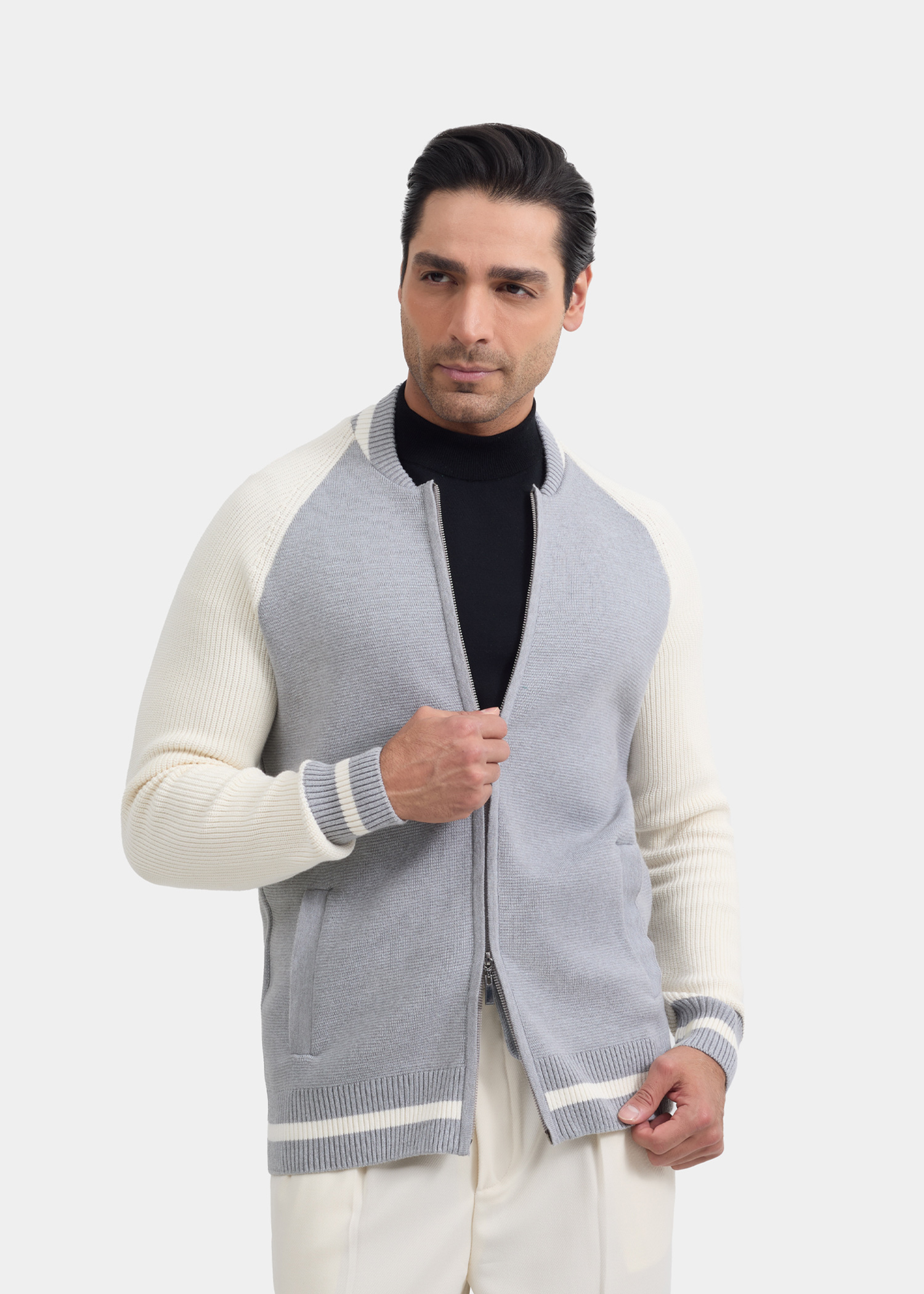 سوییشرت مردانه آستین بلند، دو سر زیپ دار، بافته شده از نخ با کیفیت، دارای کشبافت در یقه، سرآستین ها و دور کمر، ثبات رنگ در شستشو