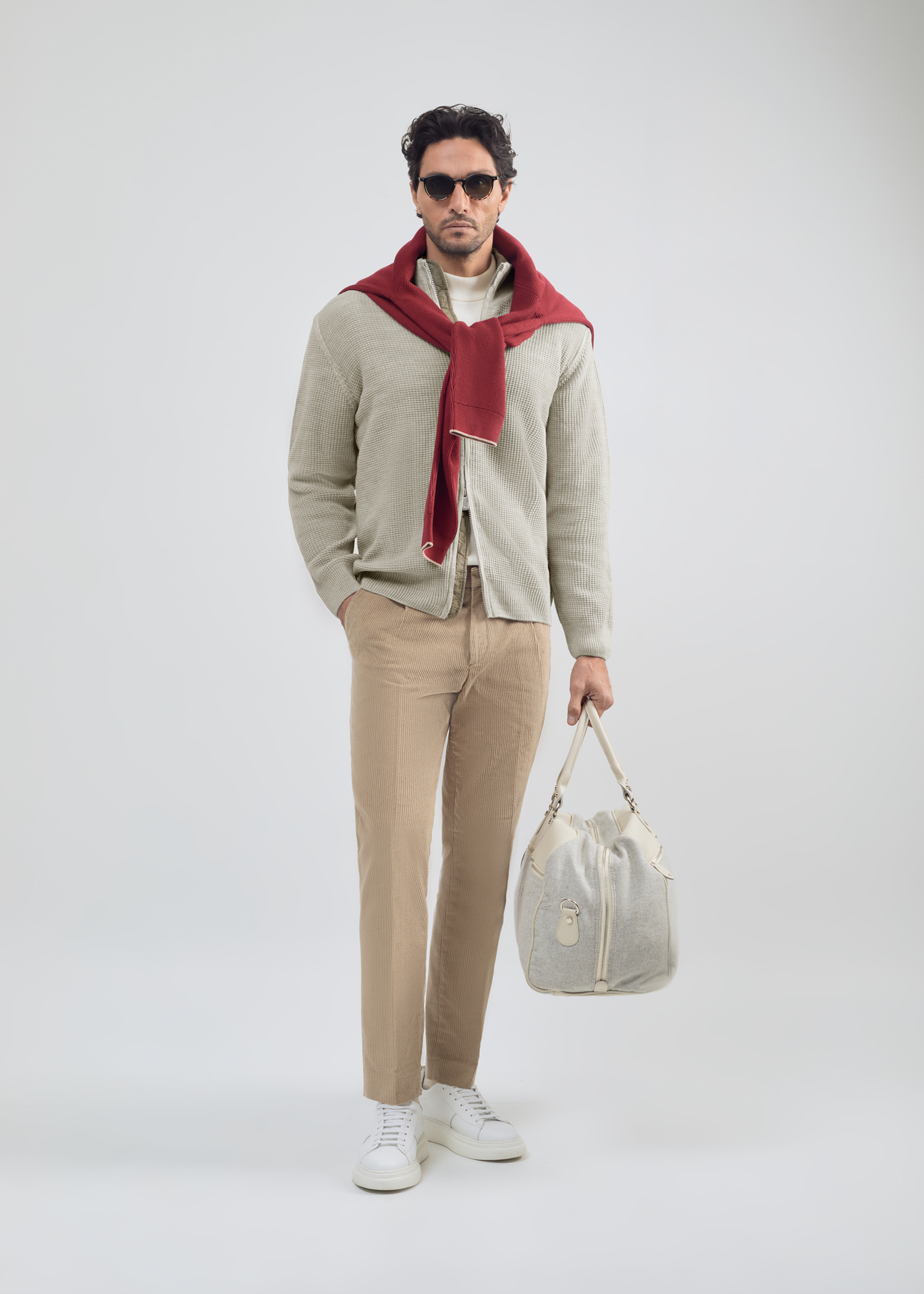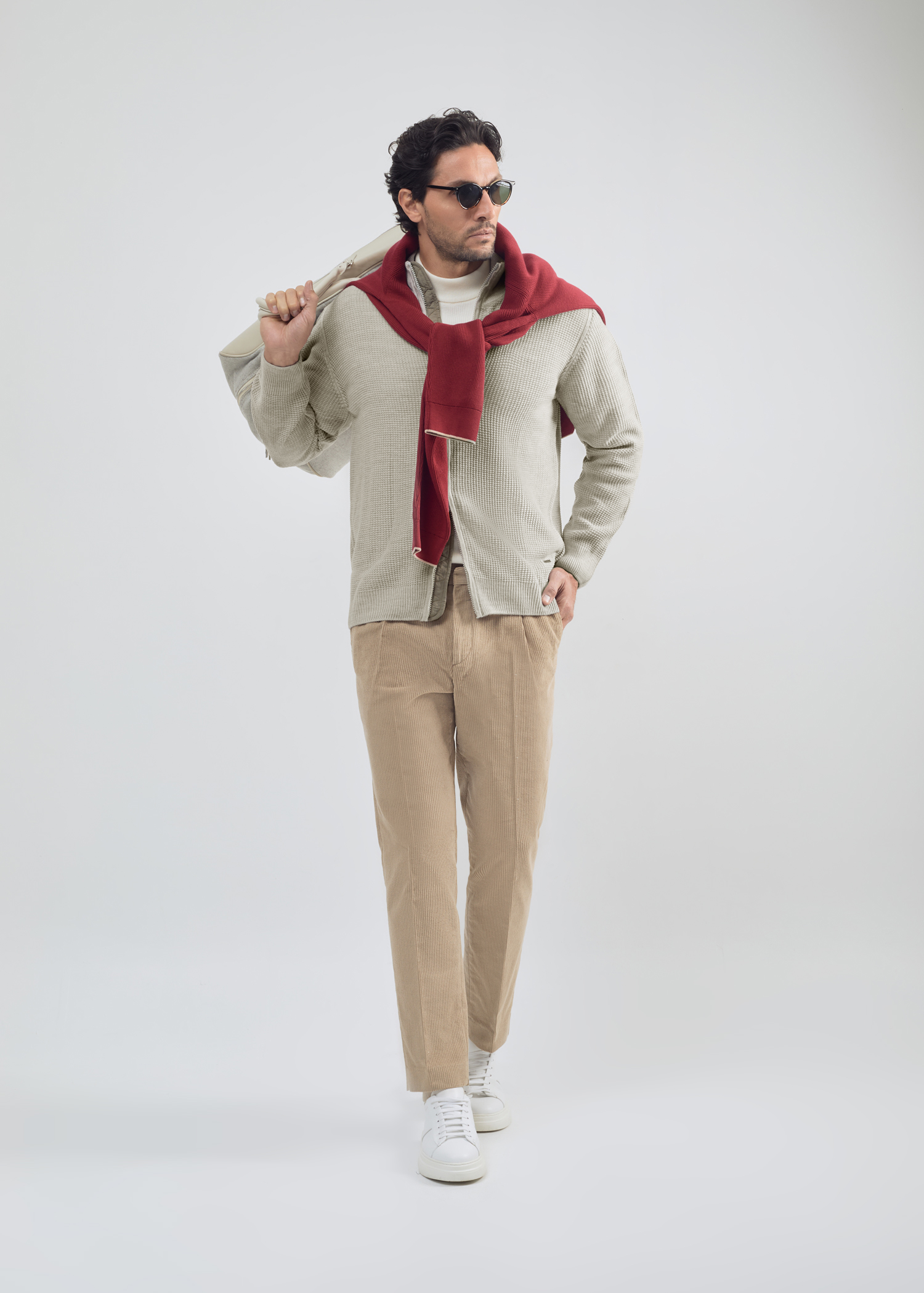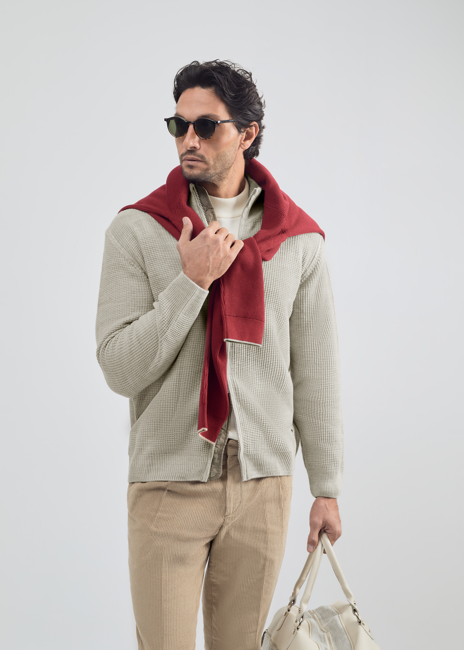 پلیور آستین بلند، دو سر زیپدار، بافته شده از نخ با کیفیت، دارای کشبافت در یقه، سرآستین ها و دور کمر، ثبات رنگ در شستشو