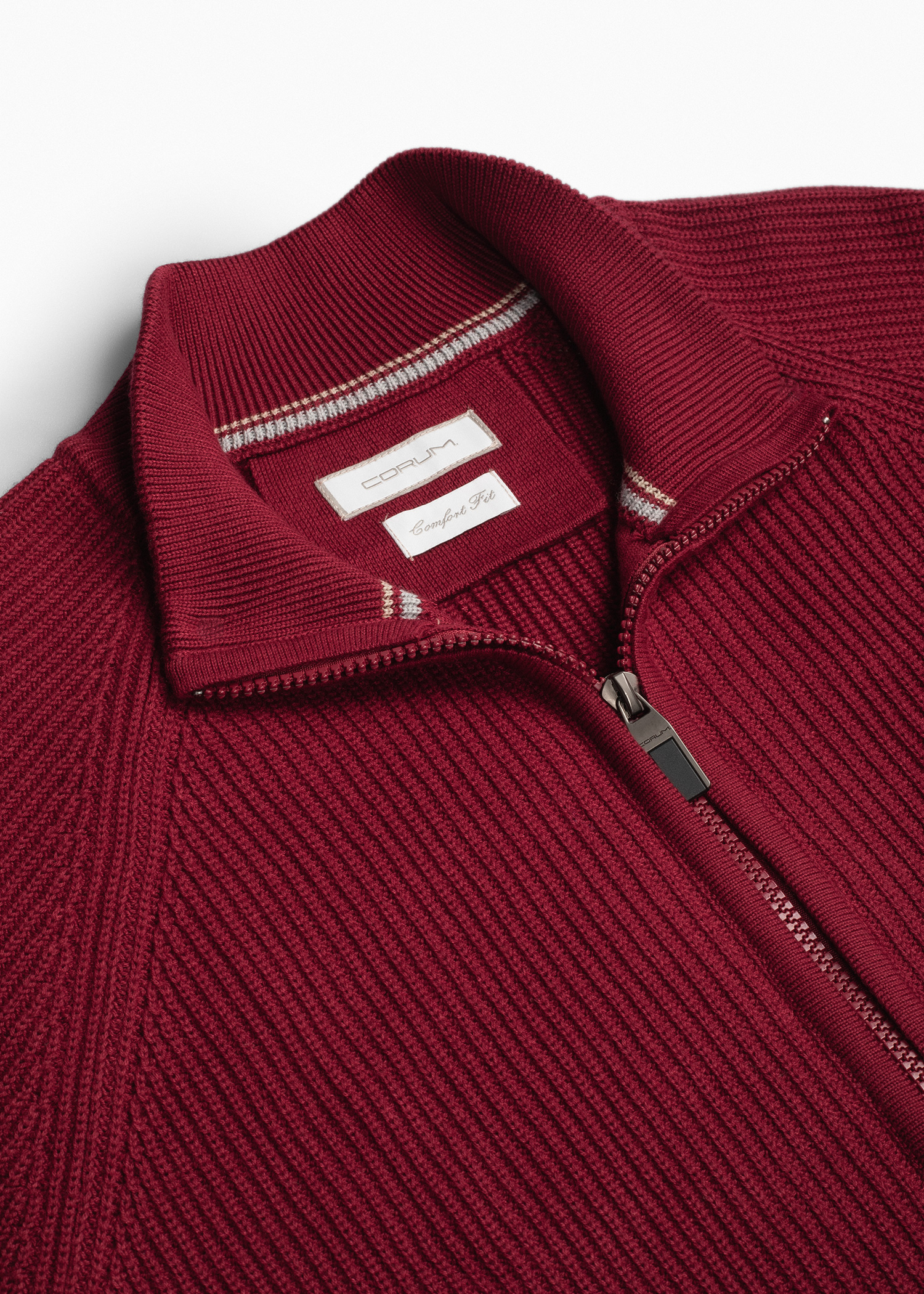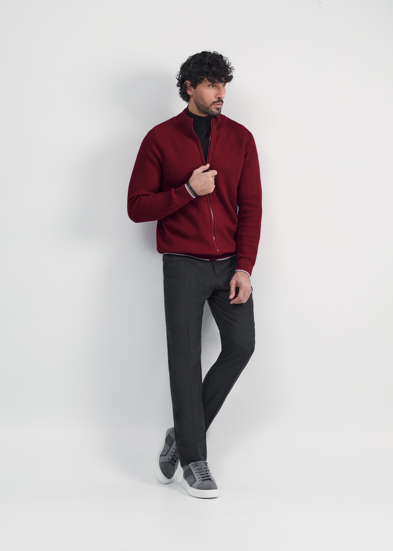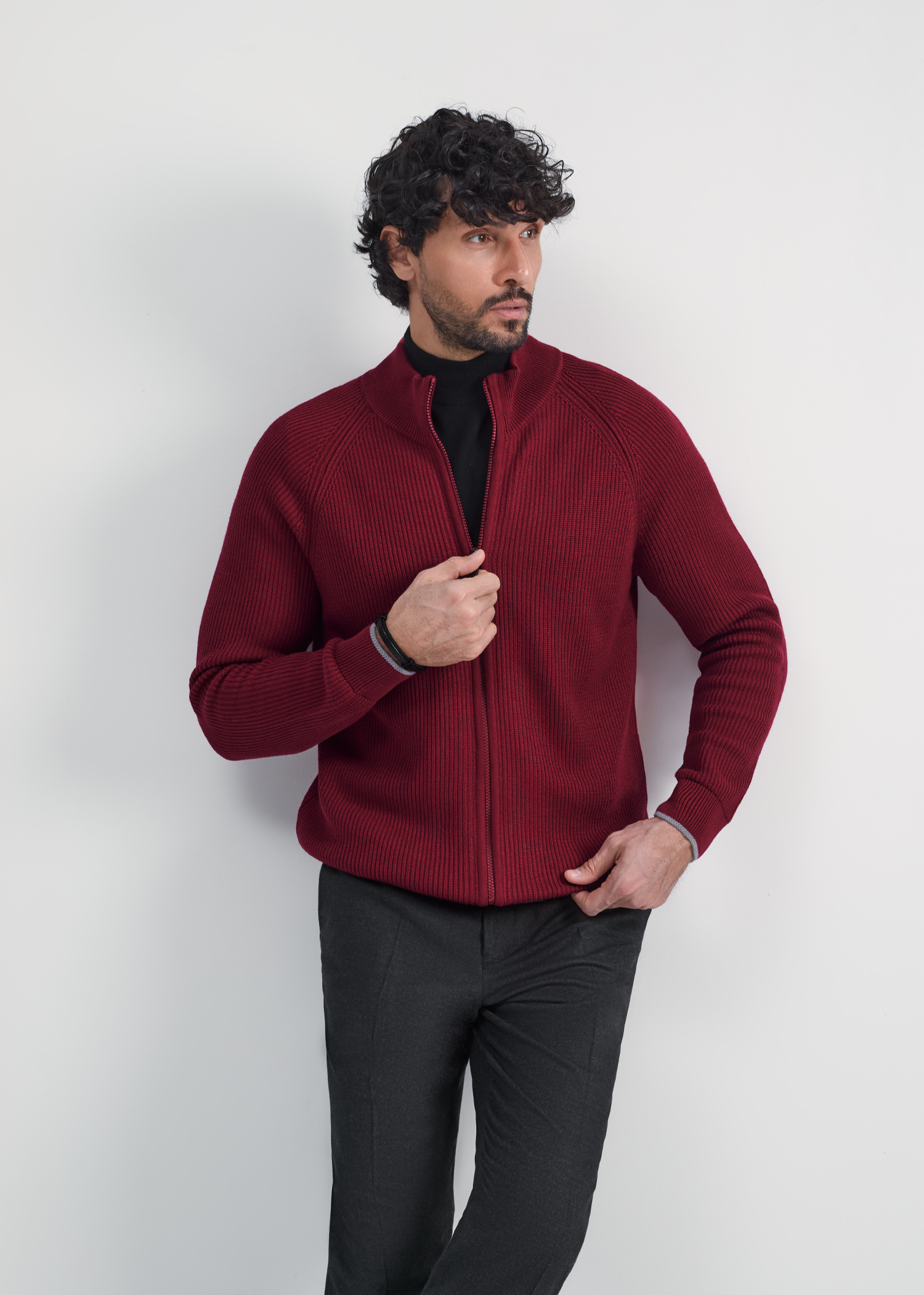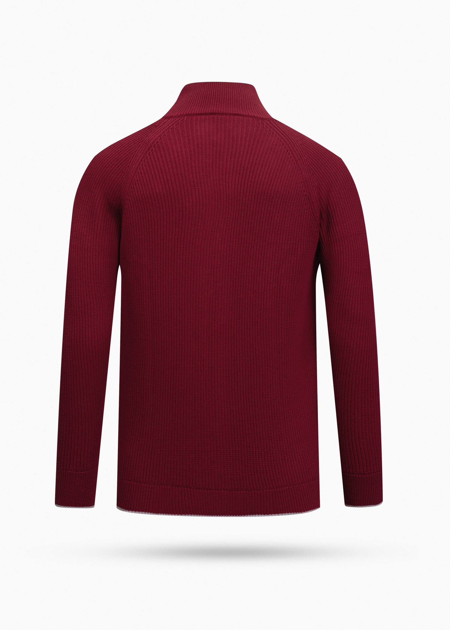 پلیور آستین بلند، دو سر زیپدار، بافته شده از نخ با کیفیت، دارای کشبافت در یقه، سرآستین ها و دور کمر، ثبات رنگ در شستشو