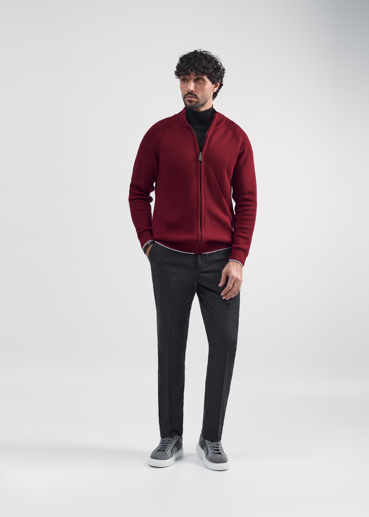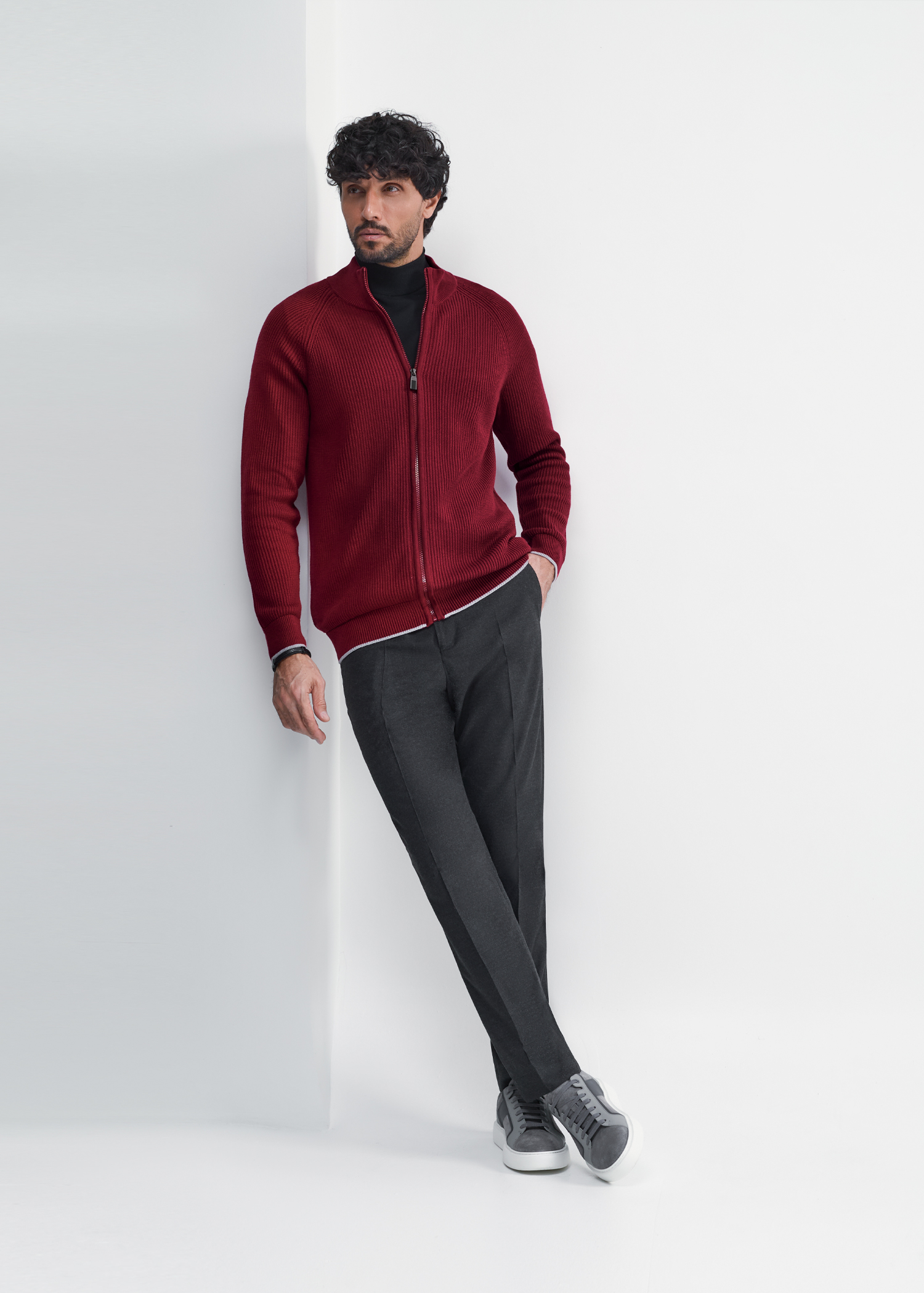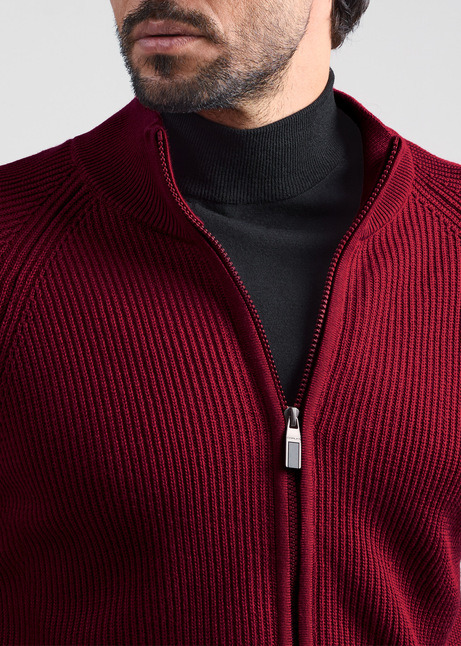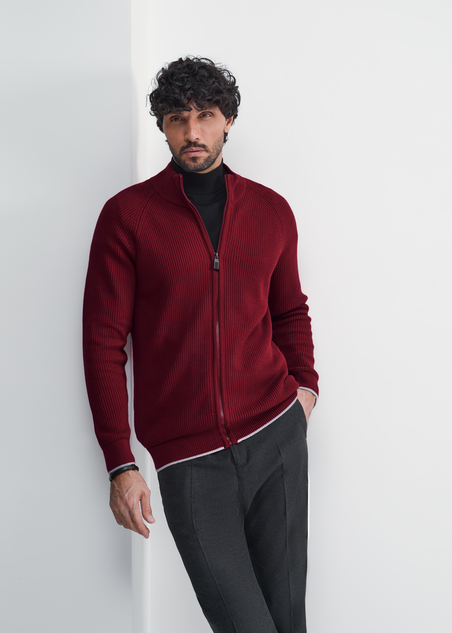 پلیور آستین بلند، دو سر زیپدار، بافته شده از نخ با کیفیت، دارای کشبافت در یقه، سرآستین ها و دور کمر، ثبات رنگ در شستشو