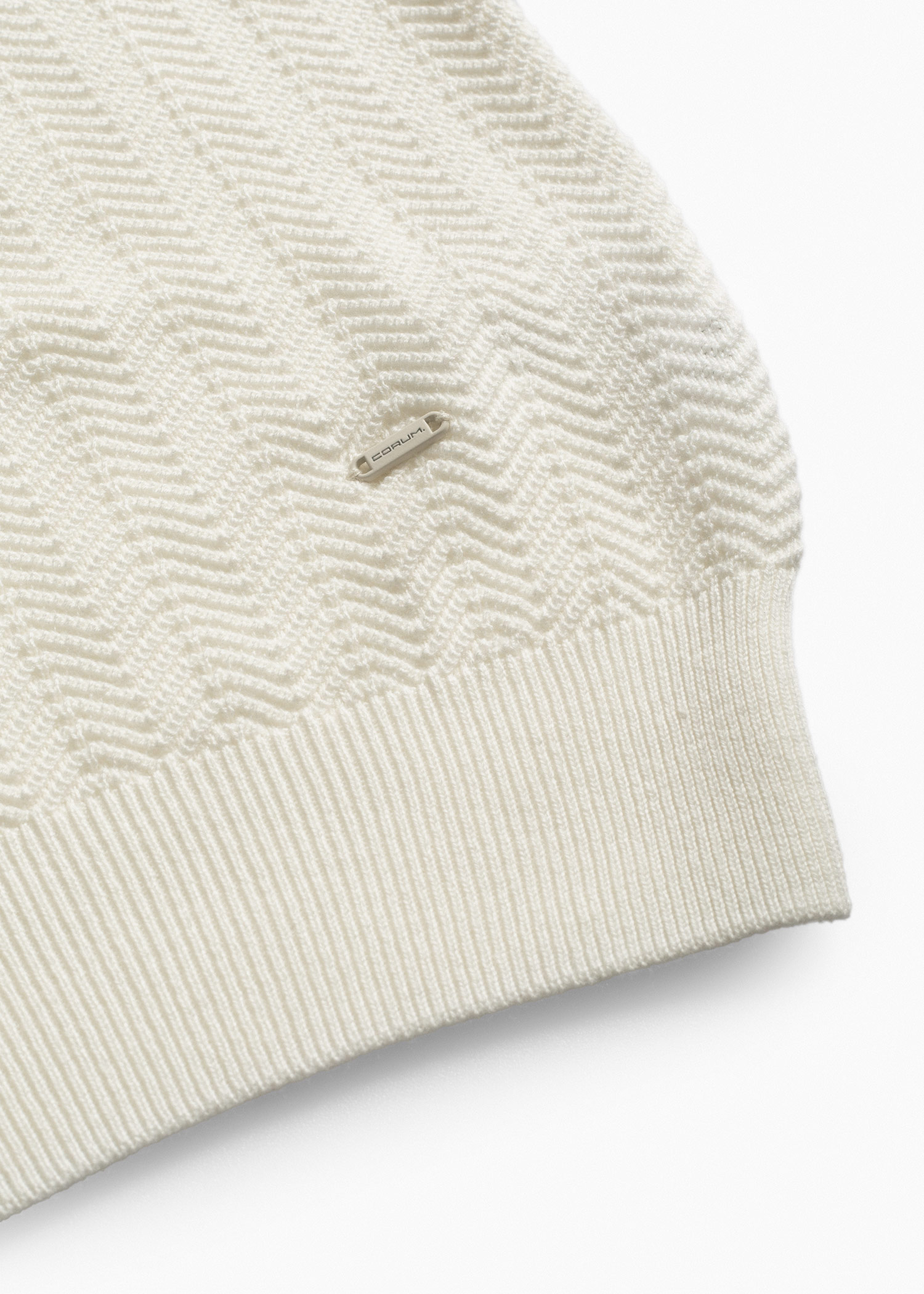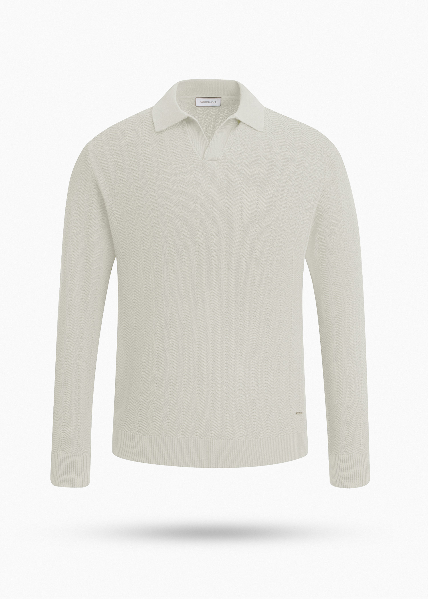 پلیور آستین بلند، بافته شده از نخ با کیفیت، دارای کشبافت در یقه، سرآستین ها و دور کمر، ثبات رنگ در شستشو