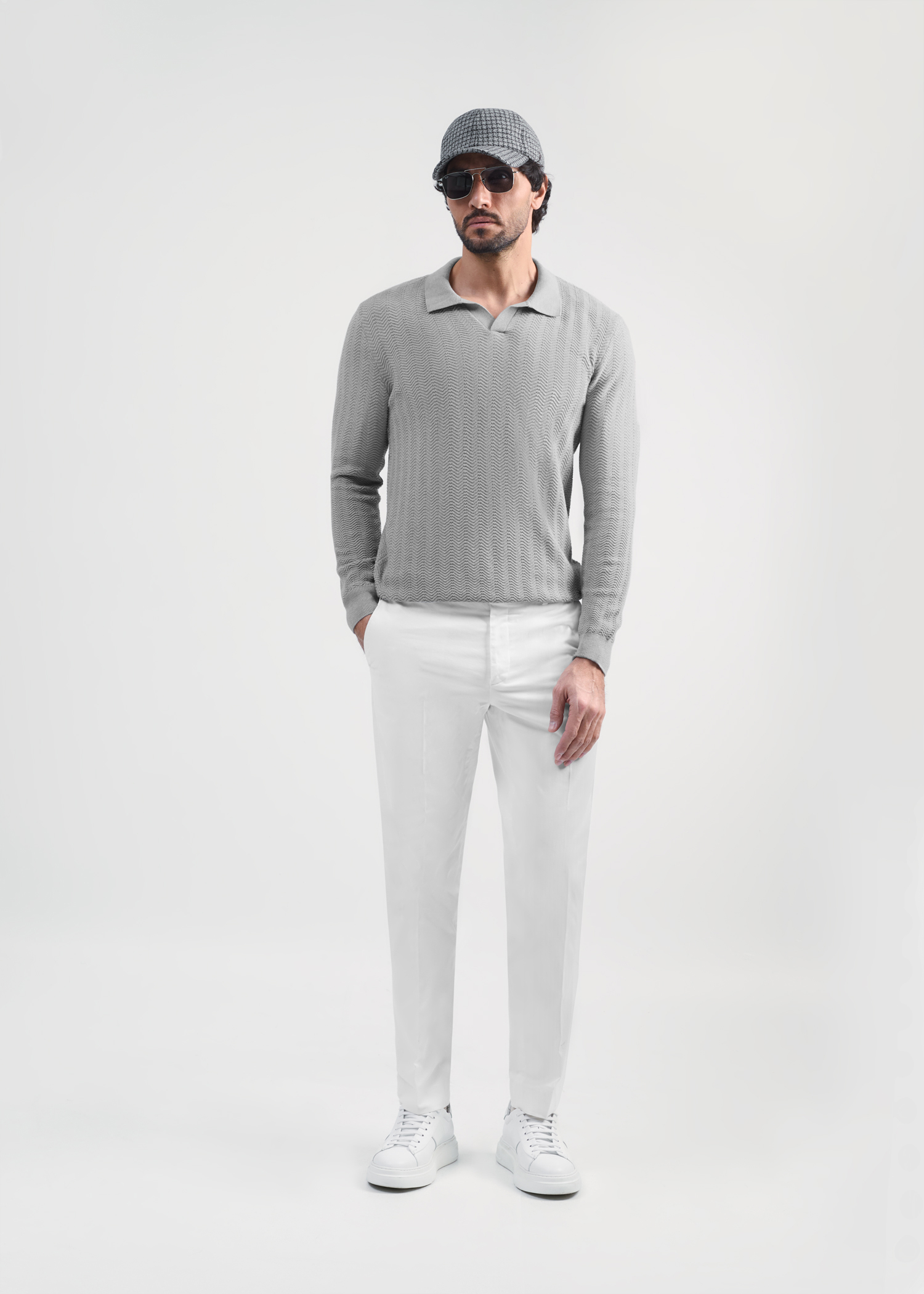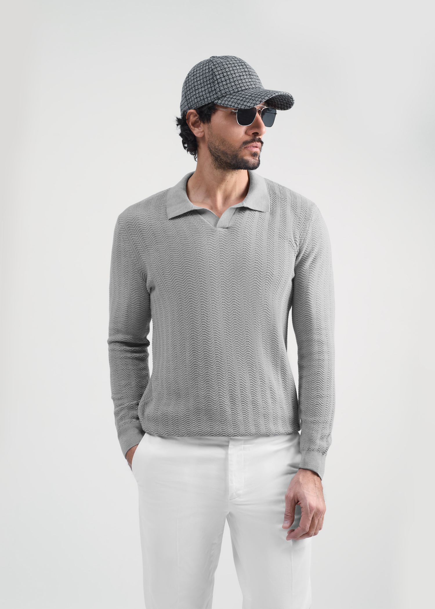 پلیور آستین بلند، بافته شده از نخ با کیفیت، دارای کشبافت در یقه، سرآستین ها و دور کمر، ثبات رنگ در شستشو