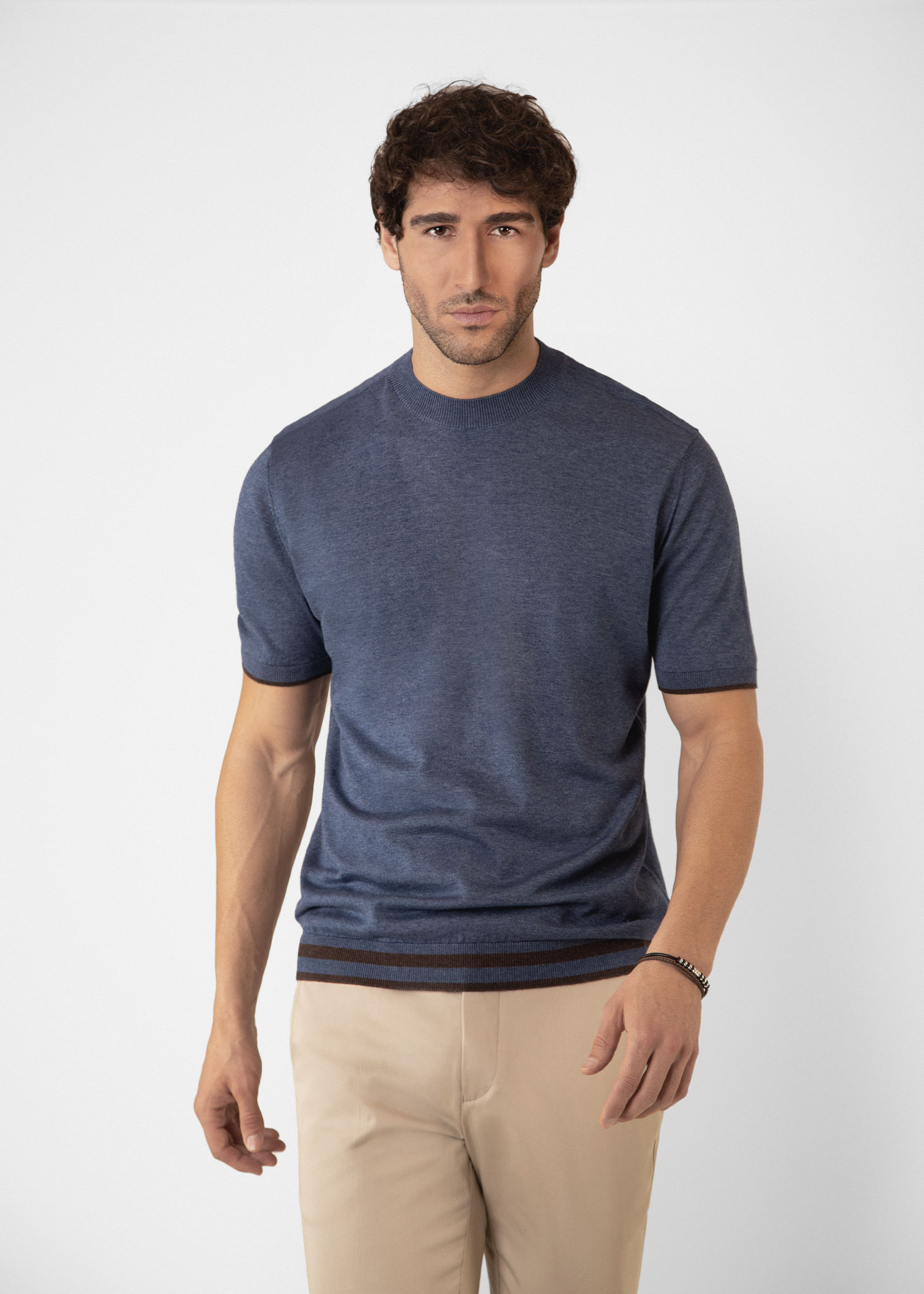 تیشرت یقه گرد بافت مردانه 2310602 - سرمه ای