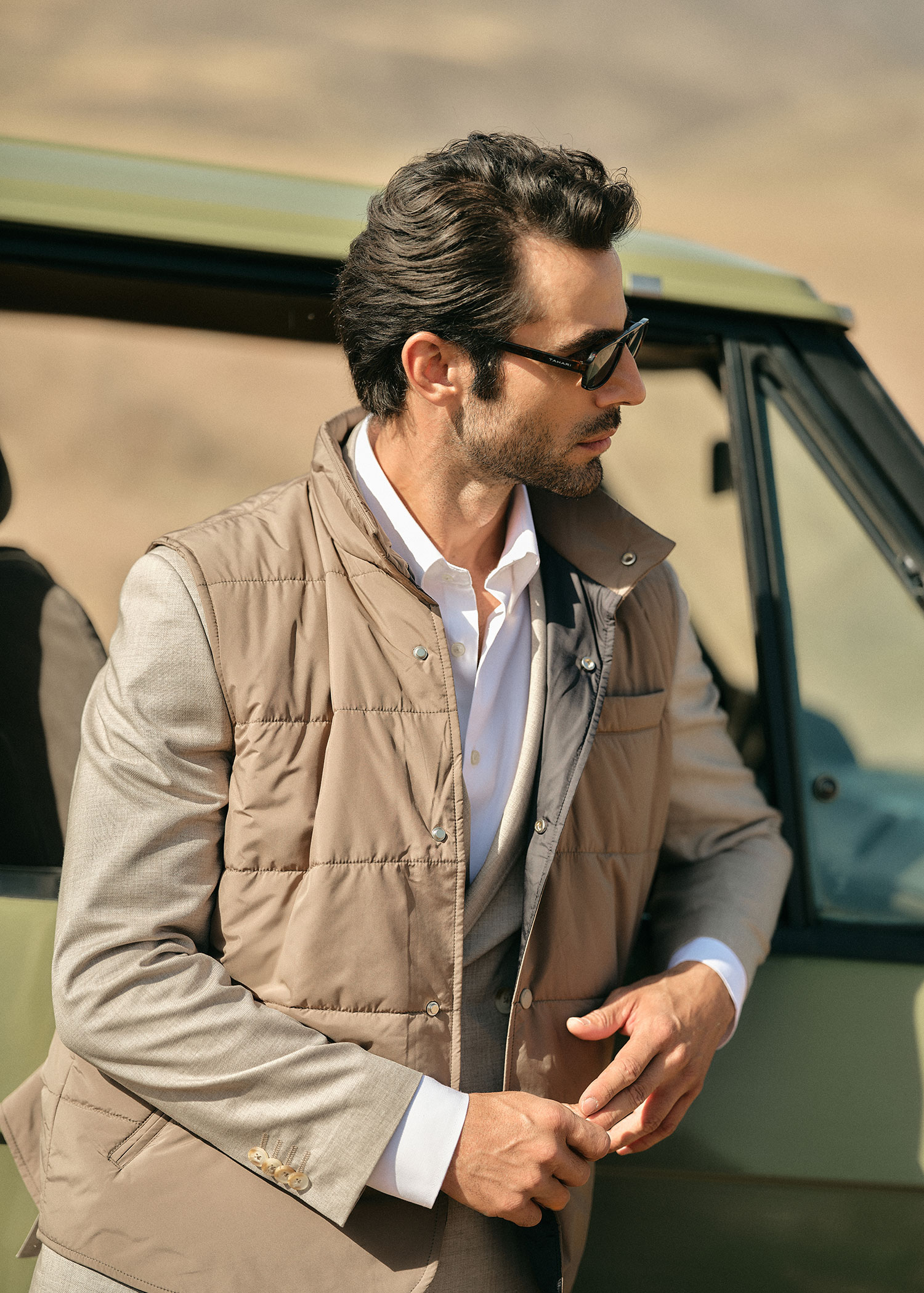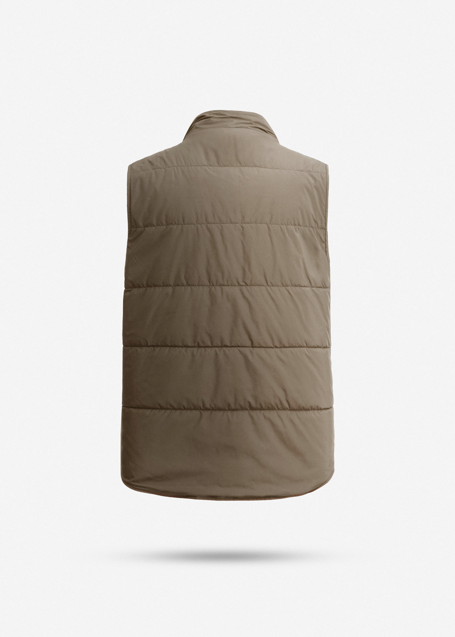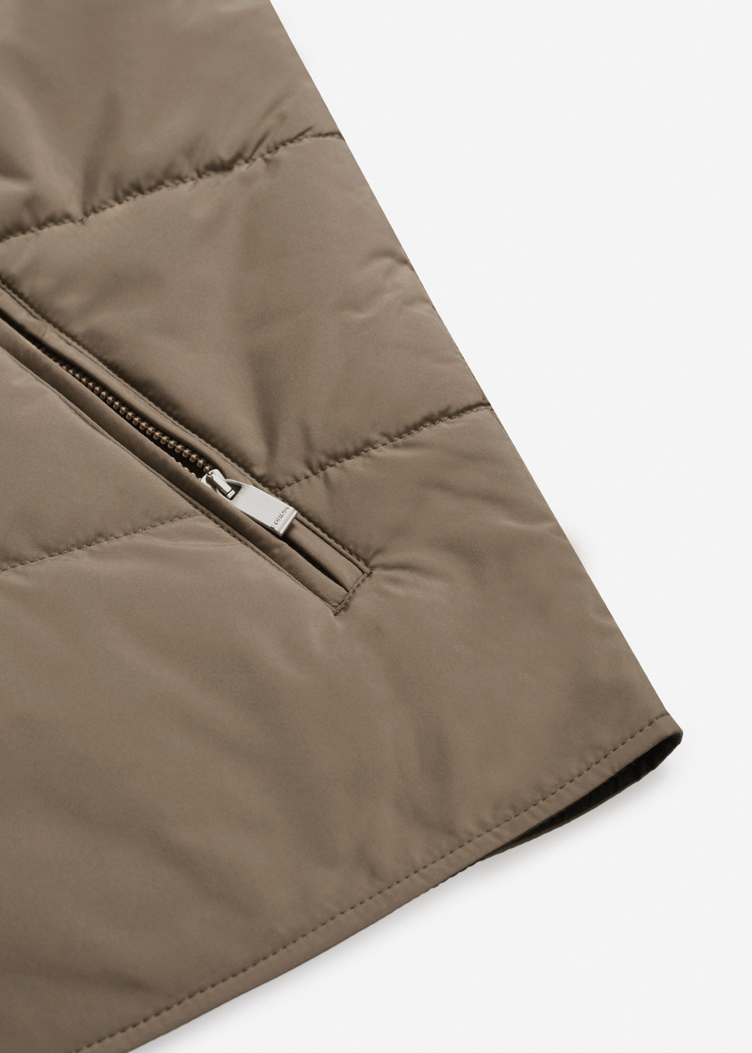 ژیله کاپشنی دکمه پرچی، الیاف بسیار سبک، پارچه ضد نفوذ آب و باد، دارای یک لایه پشم شیشه داخلی، آستر داخلی ضد آب، دارای سه جیب بیرونی و یک جیب داخلی